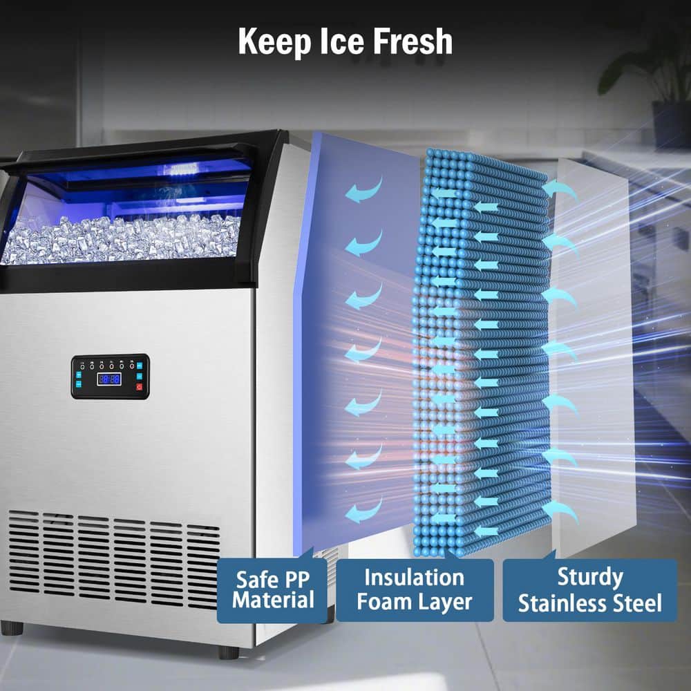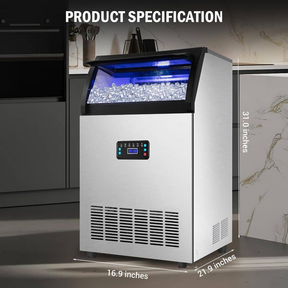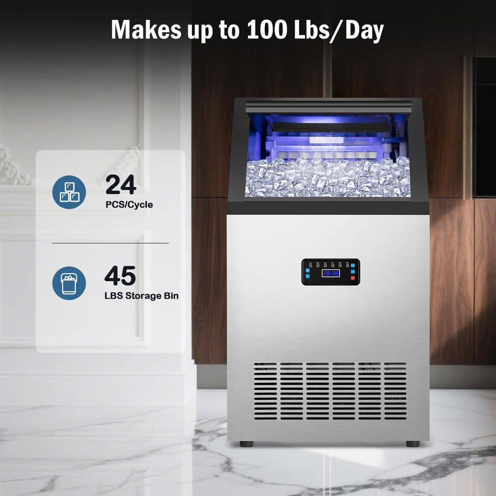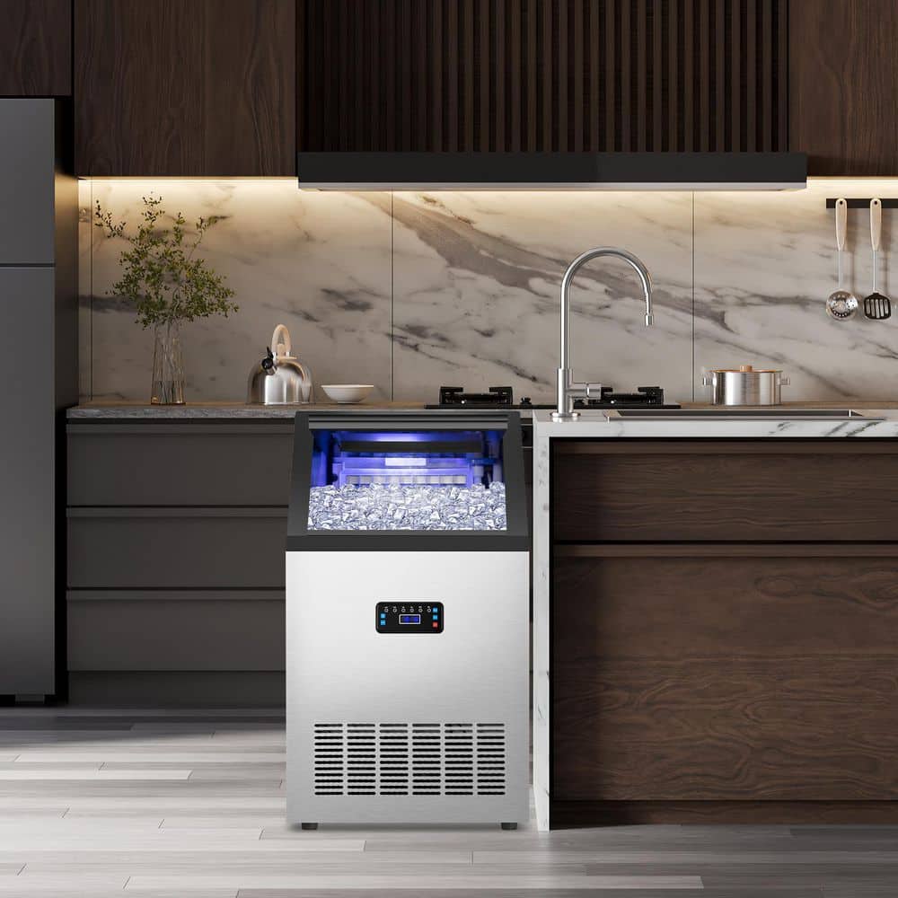 TITTLA 17.1 in. 120 lbs. per day Freestanding lce Maker in Silver Water Spray Ice-Making System Full Size High-Density Ice Cube