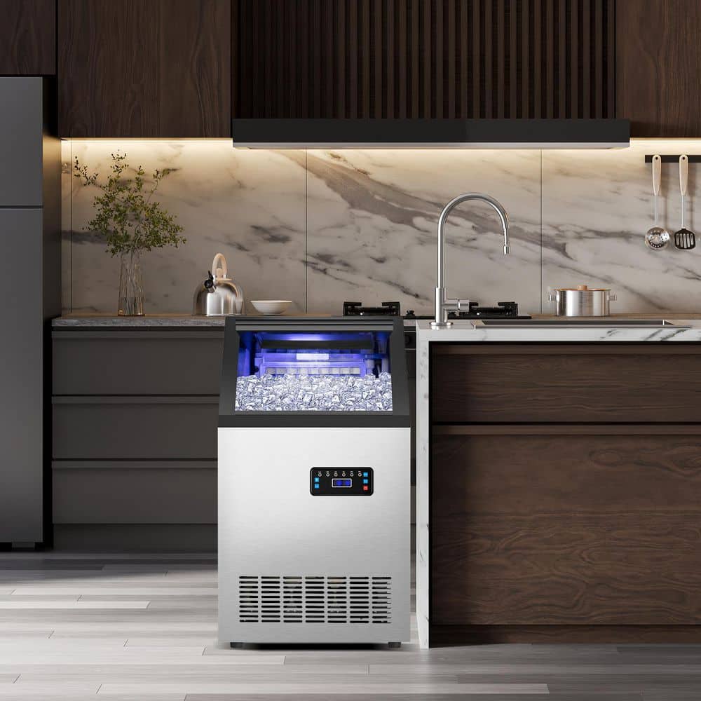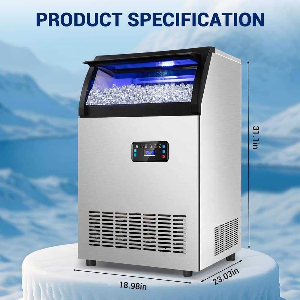 TITTLA 19 in. 145 lbs. per day High-Density Ice Cube Freestanding Ice Maker Water Spray Ice-Making in Silver w/ 3-Exhaust Fans