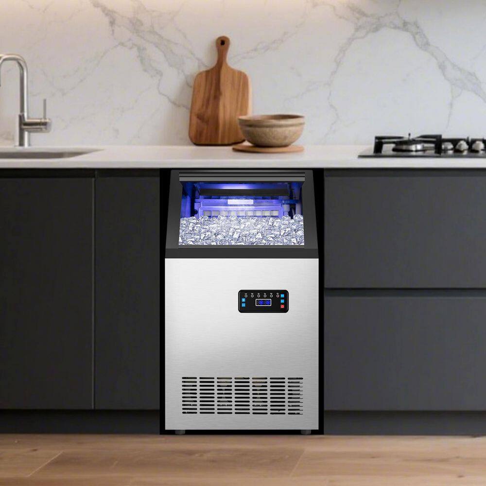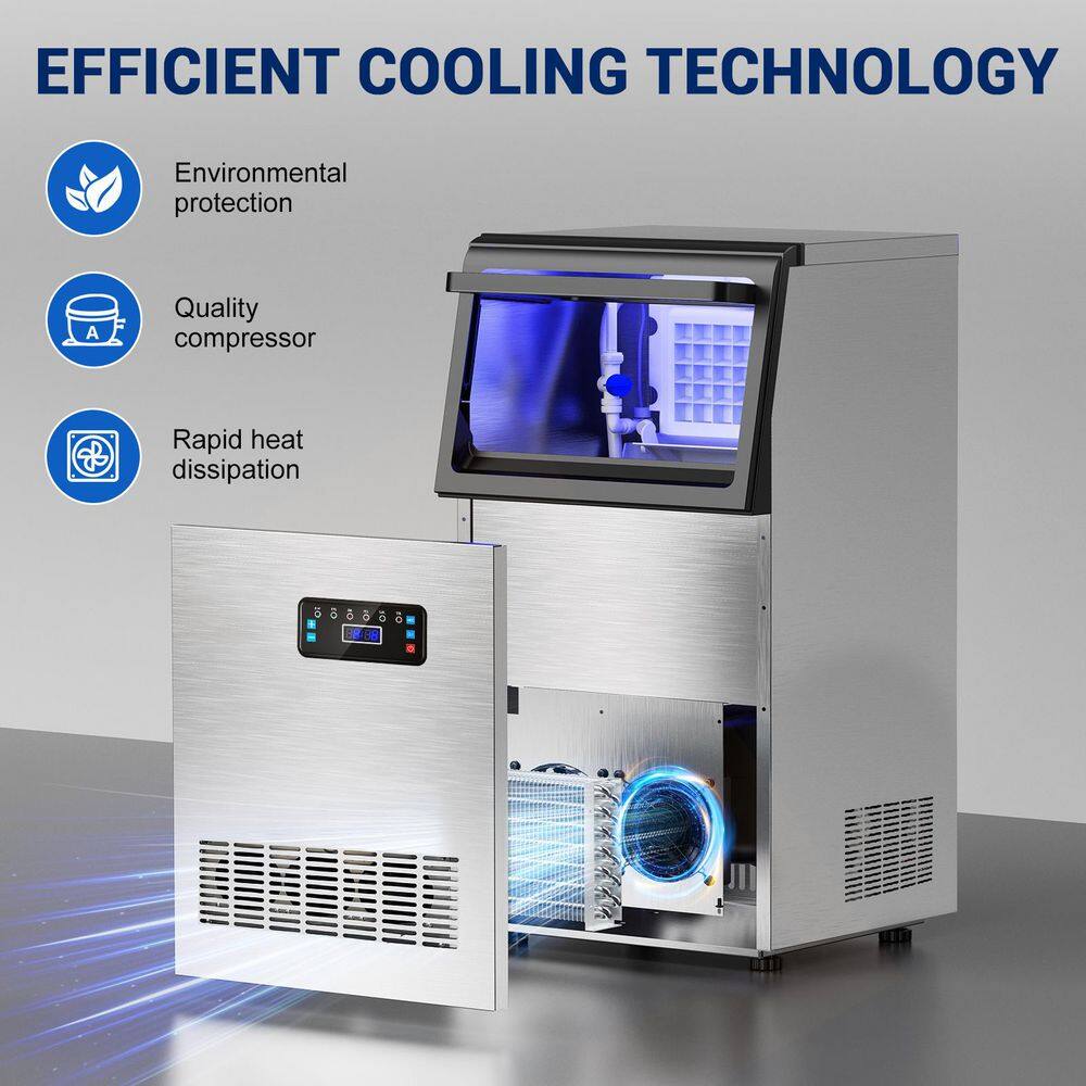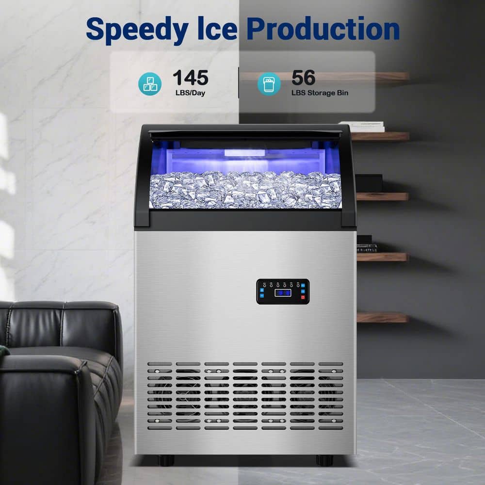 Built for hotels, banquet halls, high-volume seafood displays, and other large-scale operations, this ice maker delivers reliable performance for demanding environments. It produces up to 145 lbs. of ice per day and offers a 55.1-lb. storage capacity, ensuring a steady supply during peak demand. The machine continuously produces clear, solid cubes that enhance drink presentation and help maintain food freshness. Its gravity drainage design streamlines cleaning and maintenance, making upkeep hassle-free. Featuring a durable stainless steel exterior with efficient heat dissipation, this unit is designed for long-lasting performance. Quiet, efficient, and dependable, it keeps your business stocked and ready.