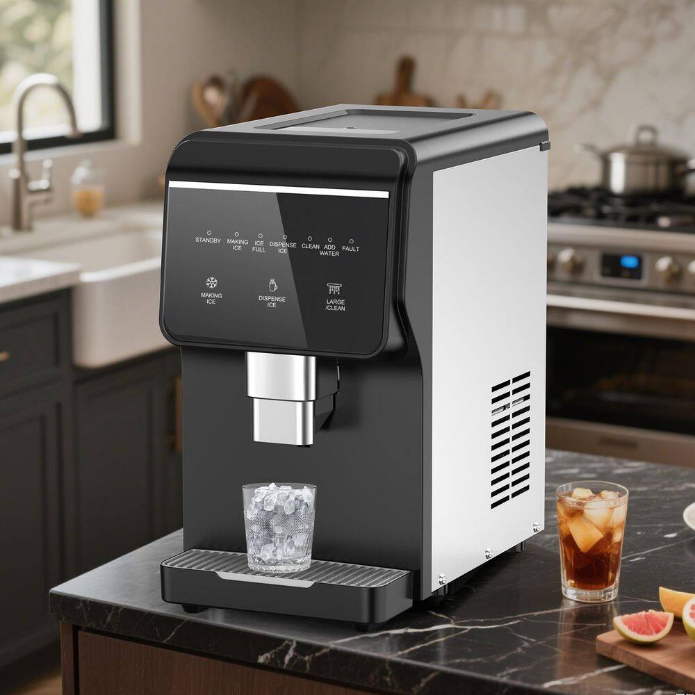Tylza 12 in 100 lbs. Full Size Ice Cubes per day Portable Nugget Countertop Freestanding Ice Maker in Black 4 Adjustable Feet