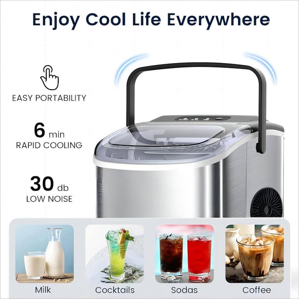 COWSAR 8.66 in. 26 lbs. Countertop or Portable Bullet Ice Maker in Stainless Steel Silver