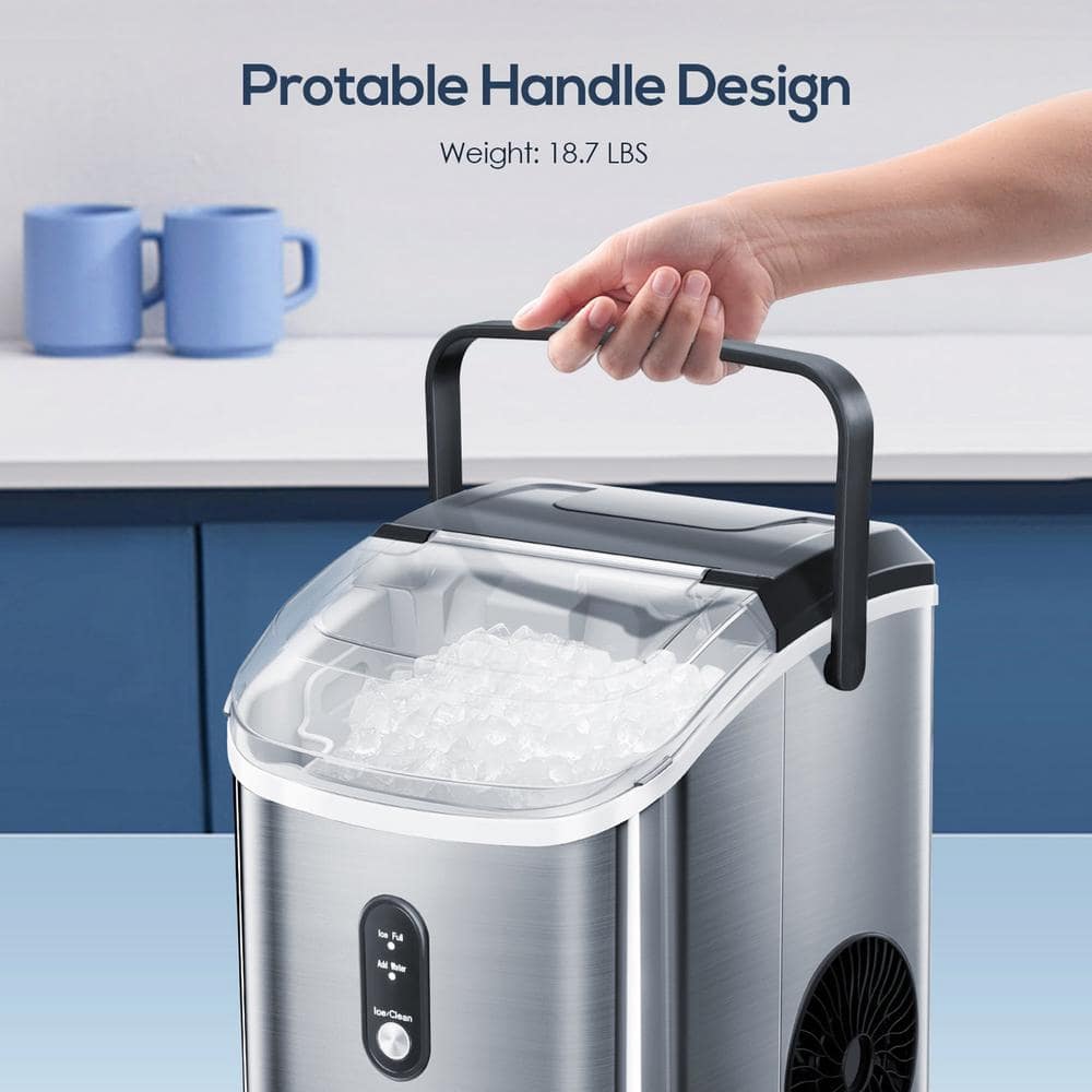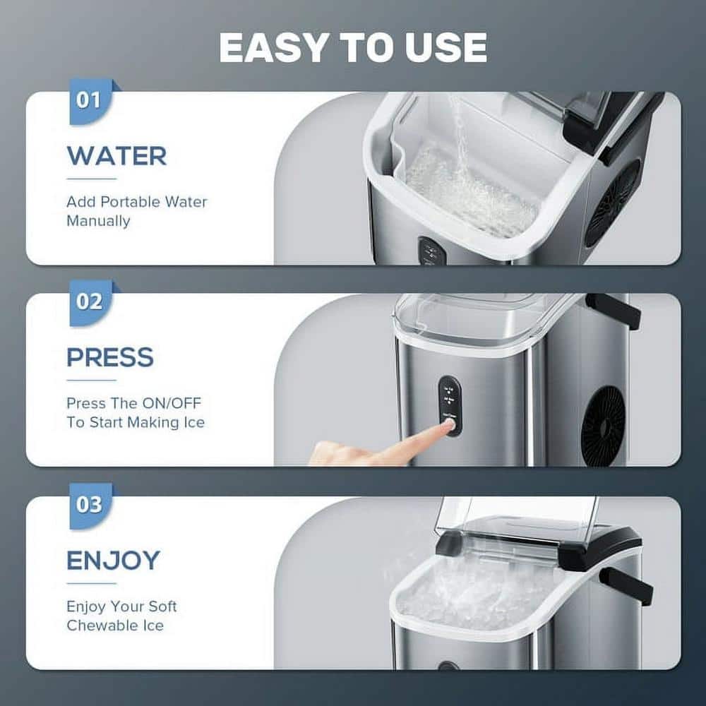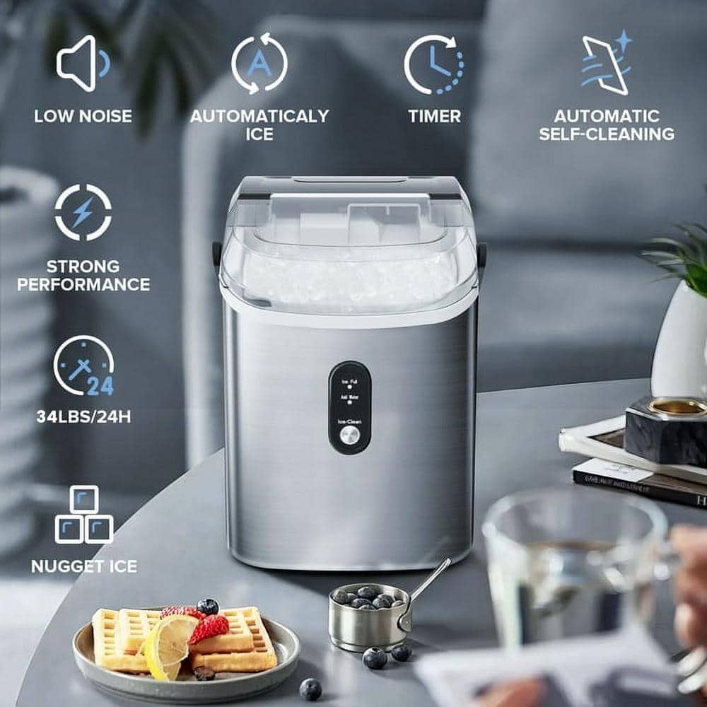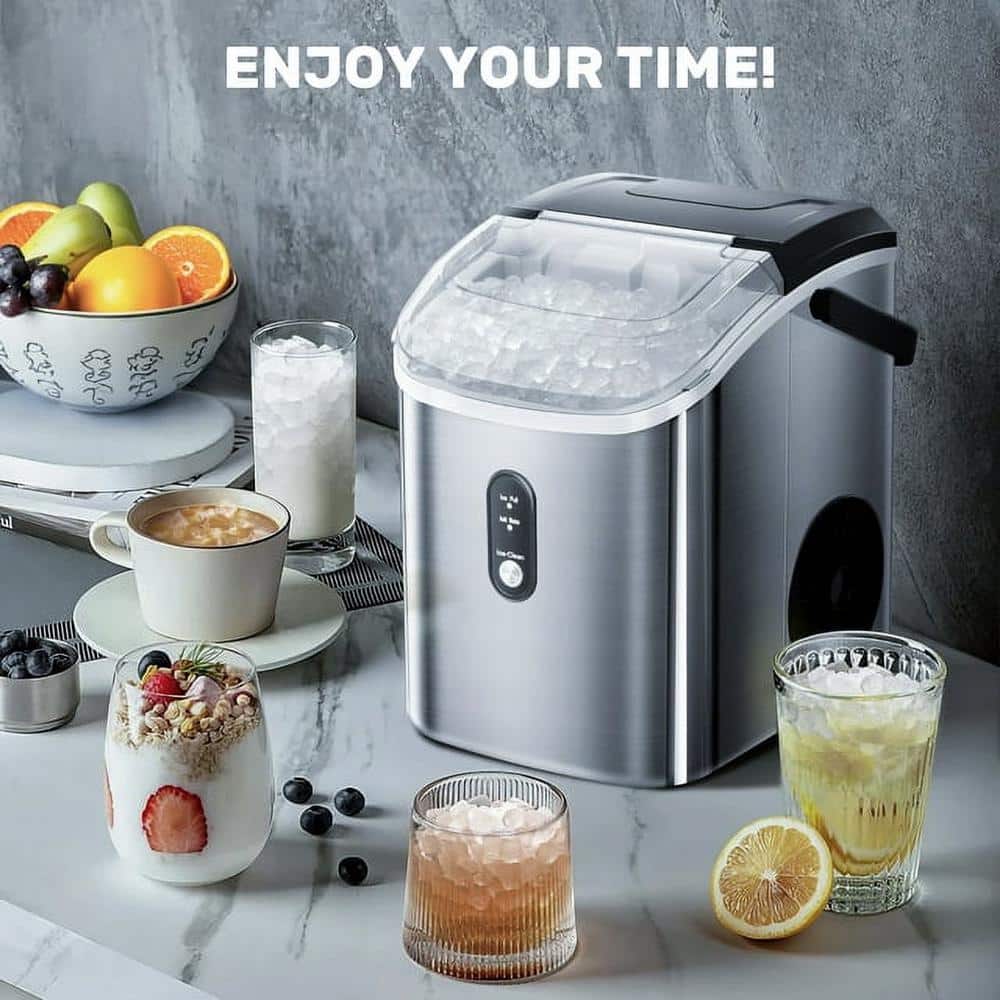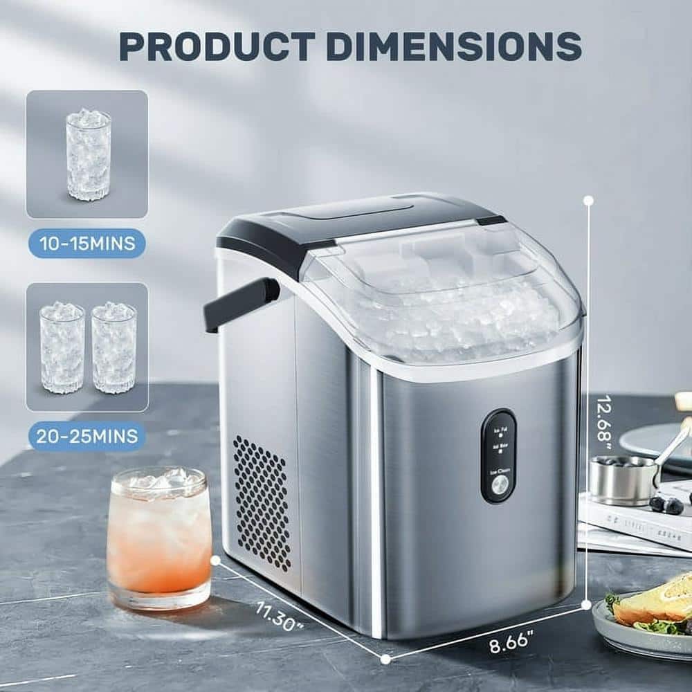 COWSAR 8.66 in. 33 lbs. Nugget Countertop Portable Ice Maker with Soft Chewable Ice and Self Clean in Stainless Steel Silver