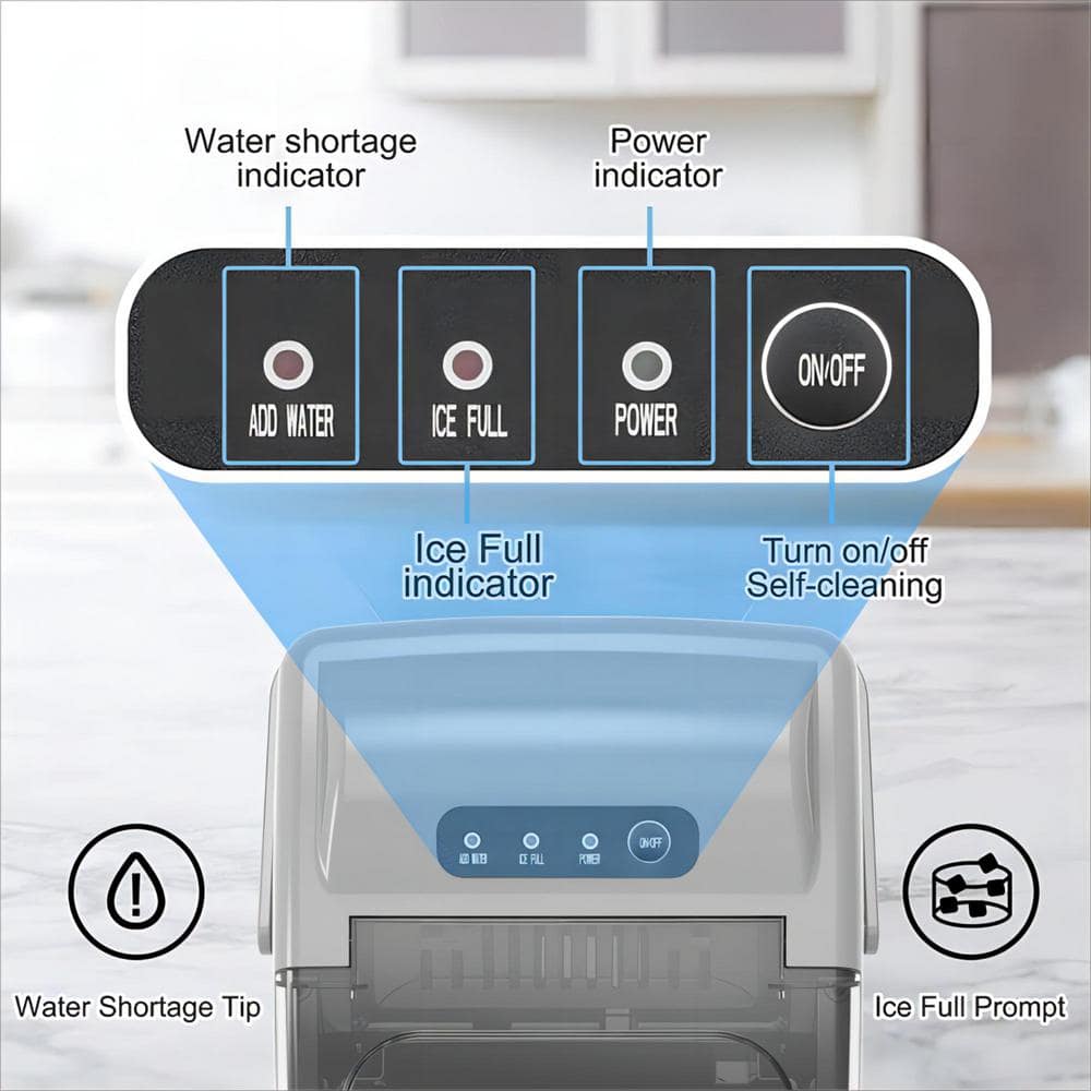 This freestanding portable ice maker produces up to 26 lbs. of ice per day, eliminating the need to constantly purchase bags of ice. Its convenient and compact design makes it perfect for use in small kitchens, RVs, boats, dorm rooms and other limited spaces. With no installation required, simply plug in the portable ice maker, add water and enjoy fresh ice in less than 6-minutes to 13-minutes. Designed with a transparent lid, this portable ice maker allows you to view the progress easily.