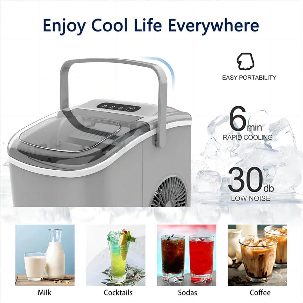 COWSAR 8.7 in. W 26 lbs. Per Day Bullet Ice Portable Counter Top Ice Maker in Grey