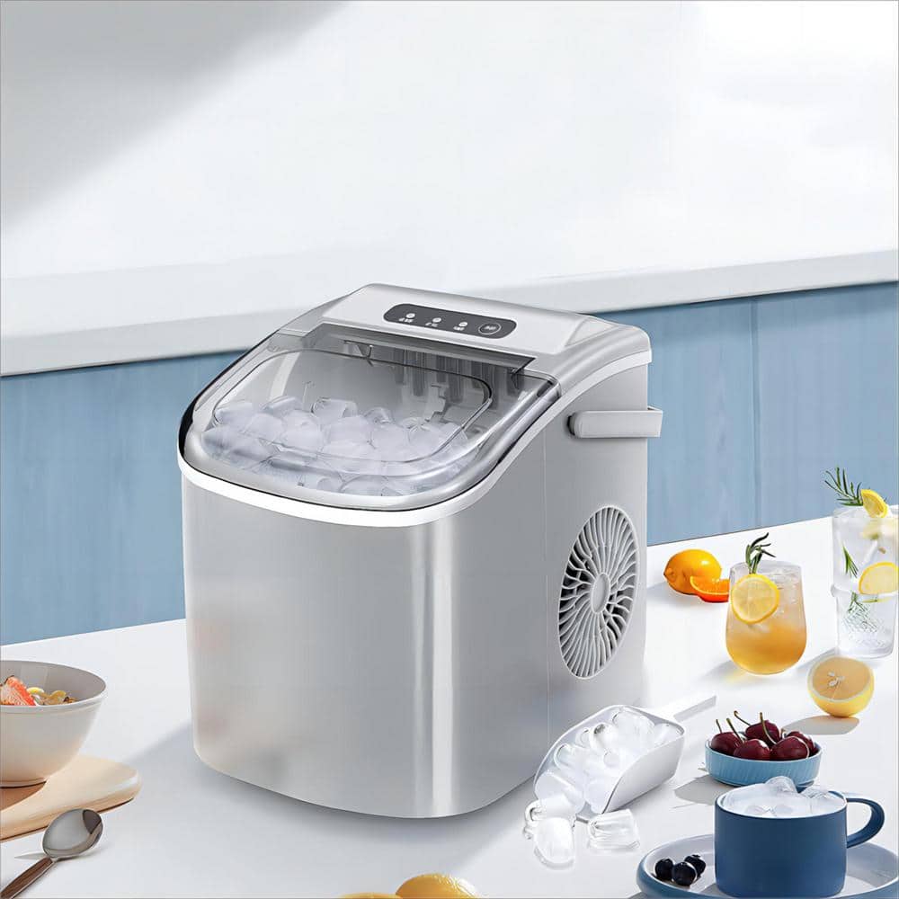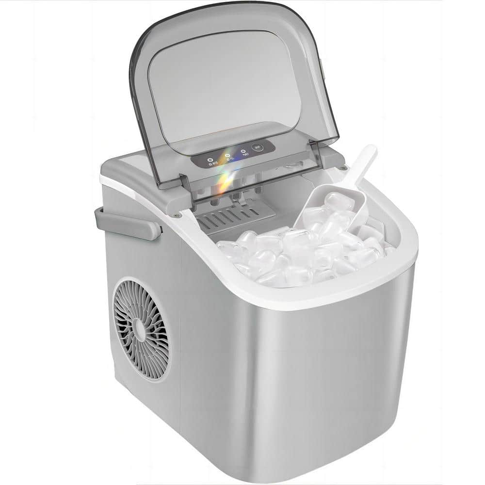 EUHOMY 9.4 in. 30 lb. Crescent Ice Portable Countertop Ice Maker in Silver with 3-Ice Sizes, Clean Cycle