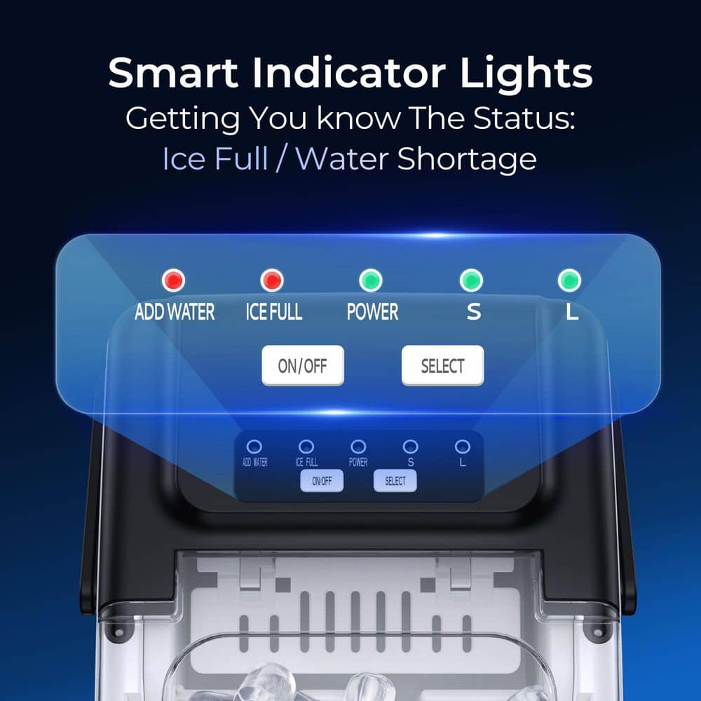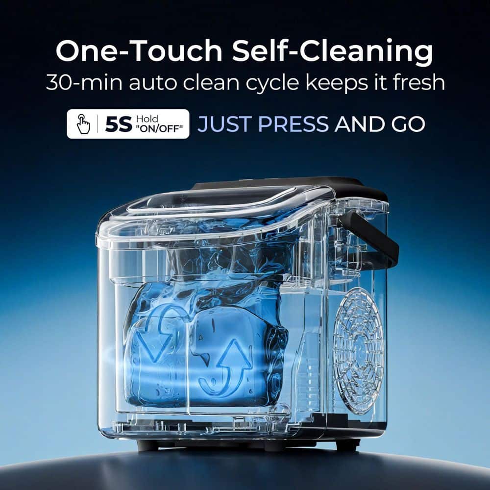 Never stress about running out of ice again! The EUHOMY countertop ice maker whips up 8 bullet-shaped cubes in 6 minutes and delivers 26 lbs of ice daily, with its compact 0.8L tank and 1 lb storage cutting down on frequent refills for steady use. It runs quieter than 45 decibels-on par with a standard fridge-to keep your space peaceful, while intuitive controls, a clear monitoring window, and auto alerts for ice full or low water take the hassle out of operation. Equipped with automatic cleaning, eco-friendly R600a refrigerant, included accessories for instant use, and ETL/CETL certification backed by a 1-year warranty, it's the reliable ice solution for daily needs and casual gatherings.