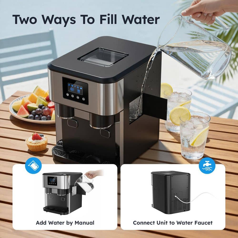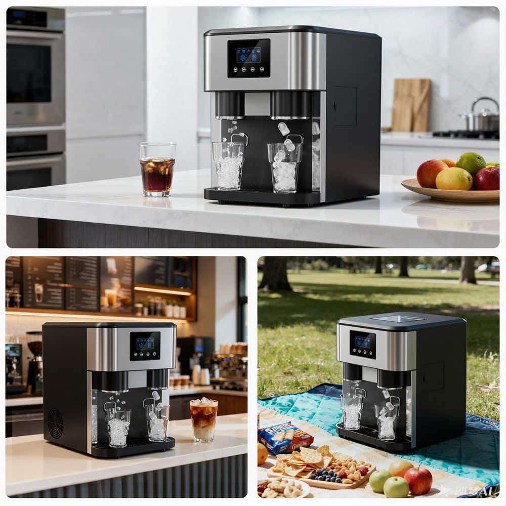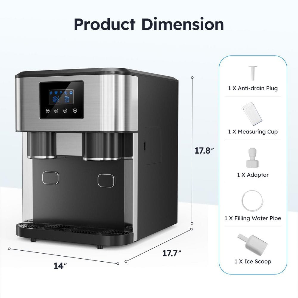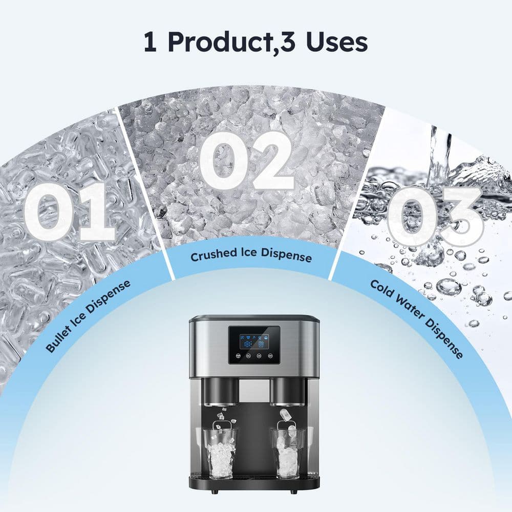 Introducing the 3-in-1 Ice Machine - your ultimate solution for instant ice, crushed ice, and refreshing ice water, all in 1 sleek device. Whether you're hosting a party, running a small business, or just craving a cold drink at home, this high-capacity ice maker delivers 15 kg (33 lbs) of ice per day to keep your beverages frosty and your guests happy. With LCD control panel precision, dual water intake options, and food-grade safety, it's designed for convenience, durability, and peace of mind. Elevate your cooling game today.