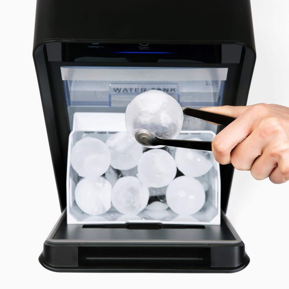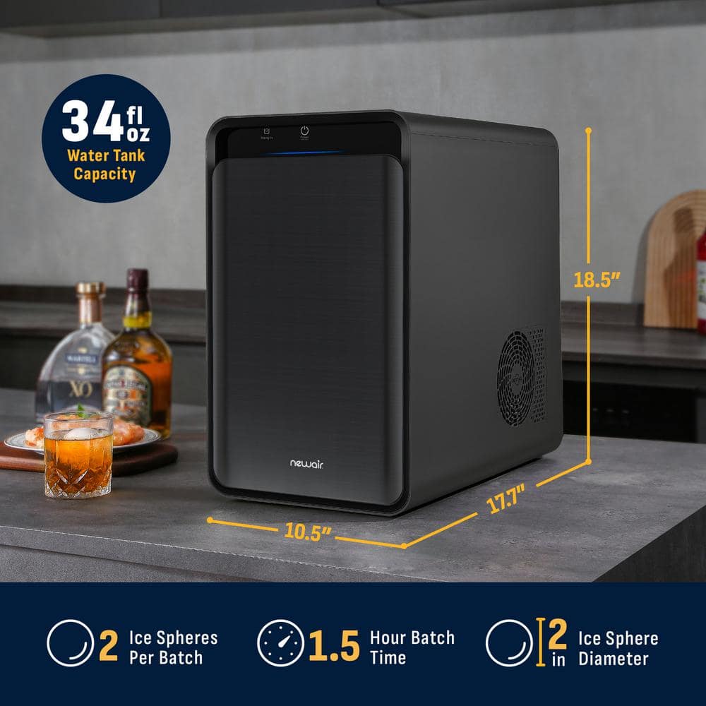 NewAir 10.5 in. Countertop Craft Whiskey Cocktail Ice Ball Maker 5 lbs. Per Day, Black Stainless Steel