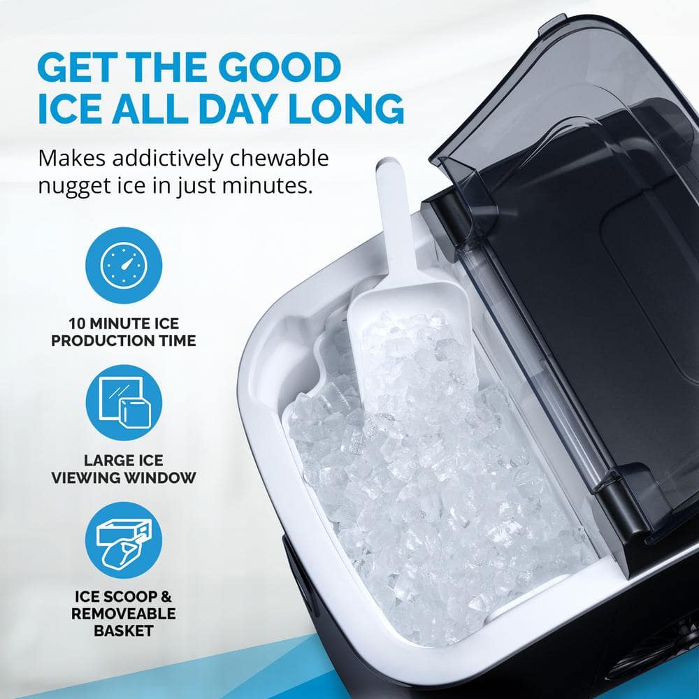 NewAir 11 in. 26 lb. Countertop Nugget Portable Ice Maker in Matte Black with Window, Self-Cleaning and Easy-Pour Waterspout
