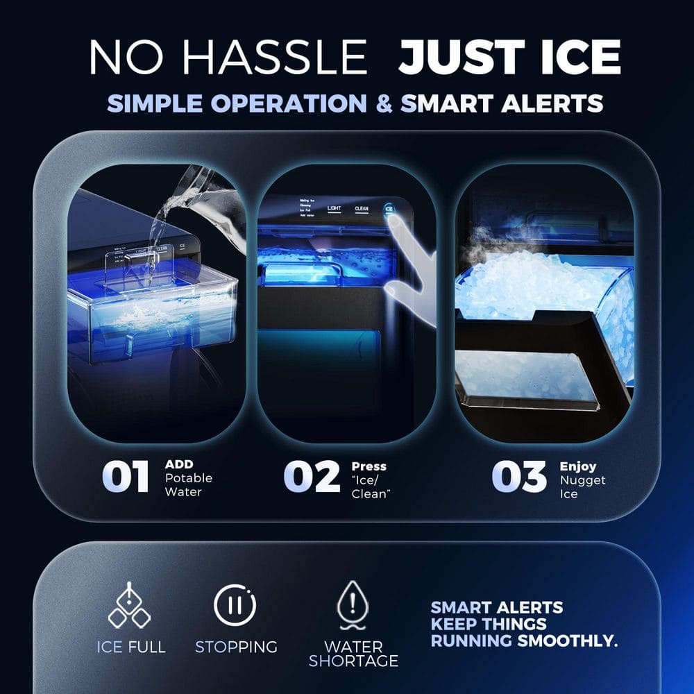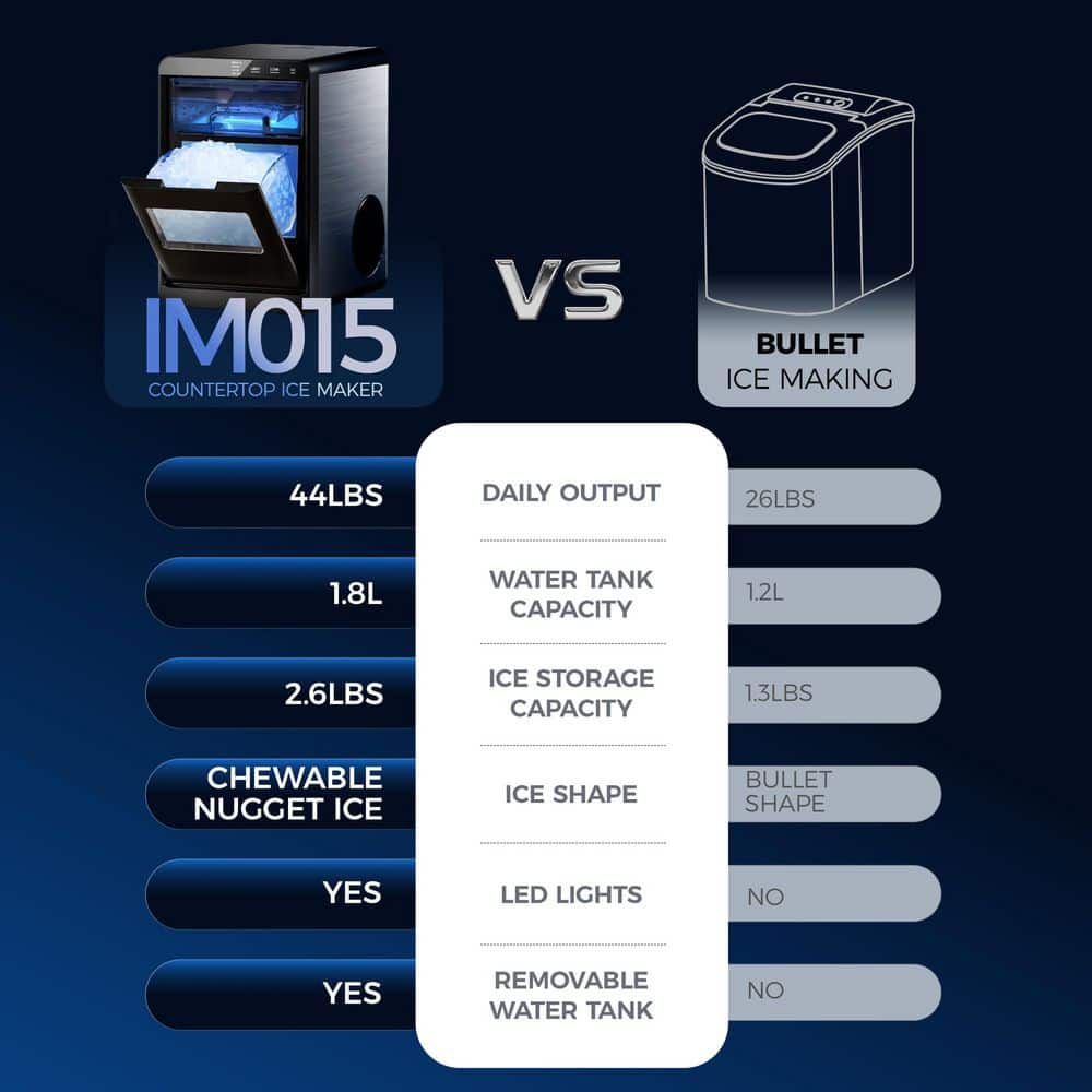 - 45 lbs/24H, ready in 15 mins, Nugget ice