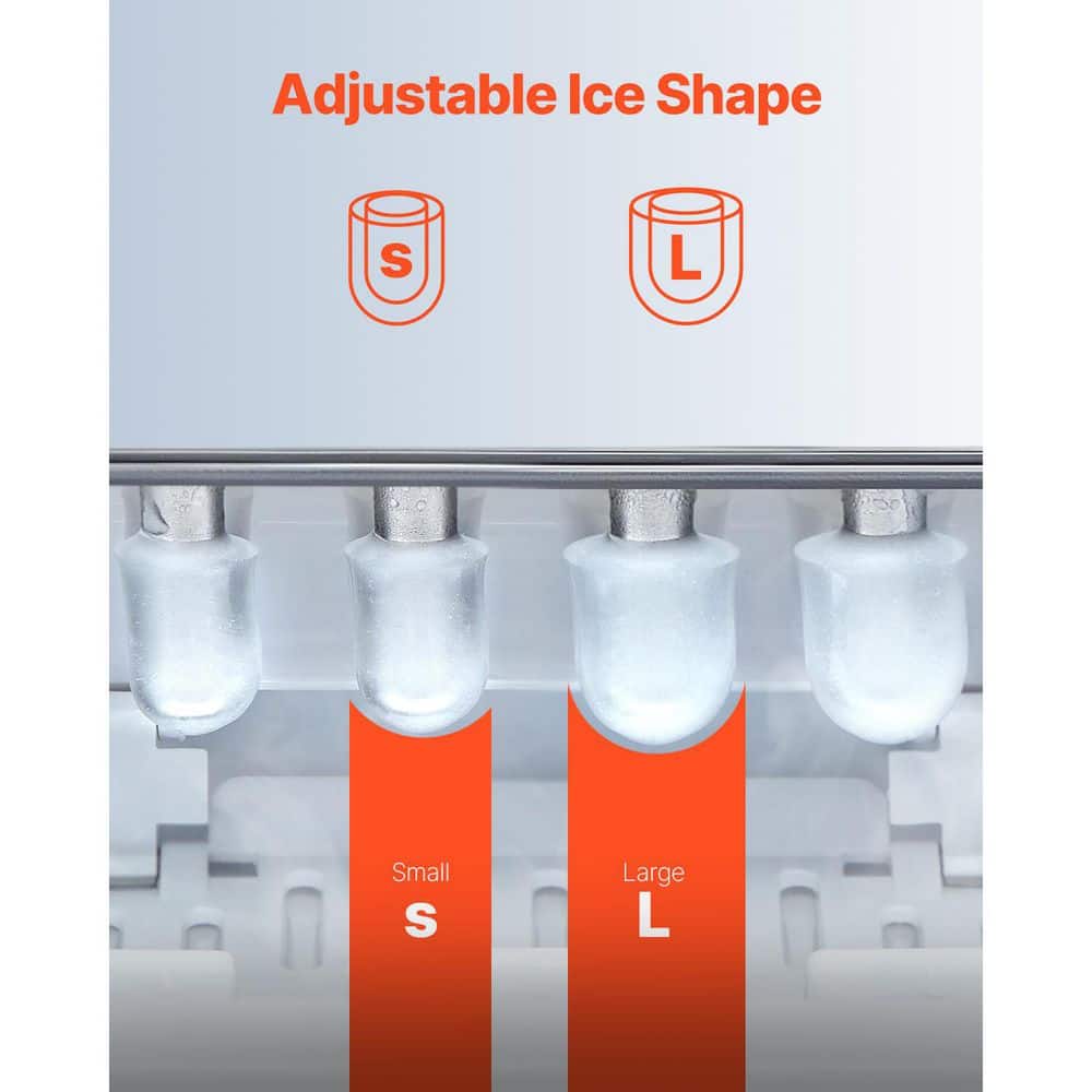 EUHOMY 9.4 in. 30 lb. Crescent Ice Portable Countertop Ice Maker in Silver with 3-Ice Sizes, Clean Cycle