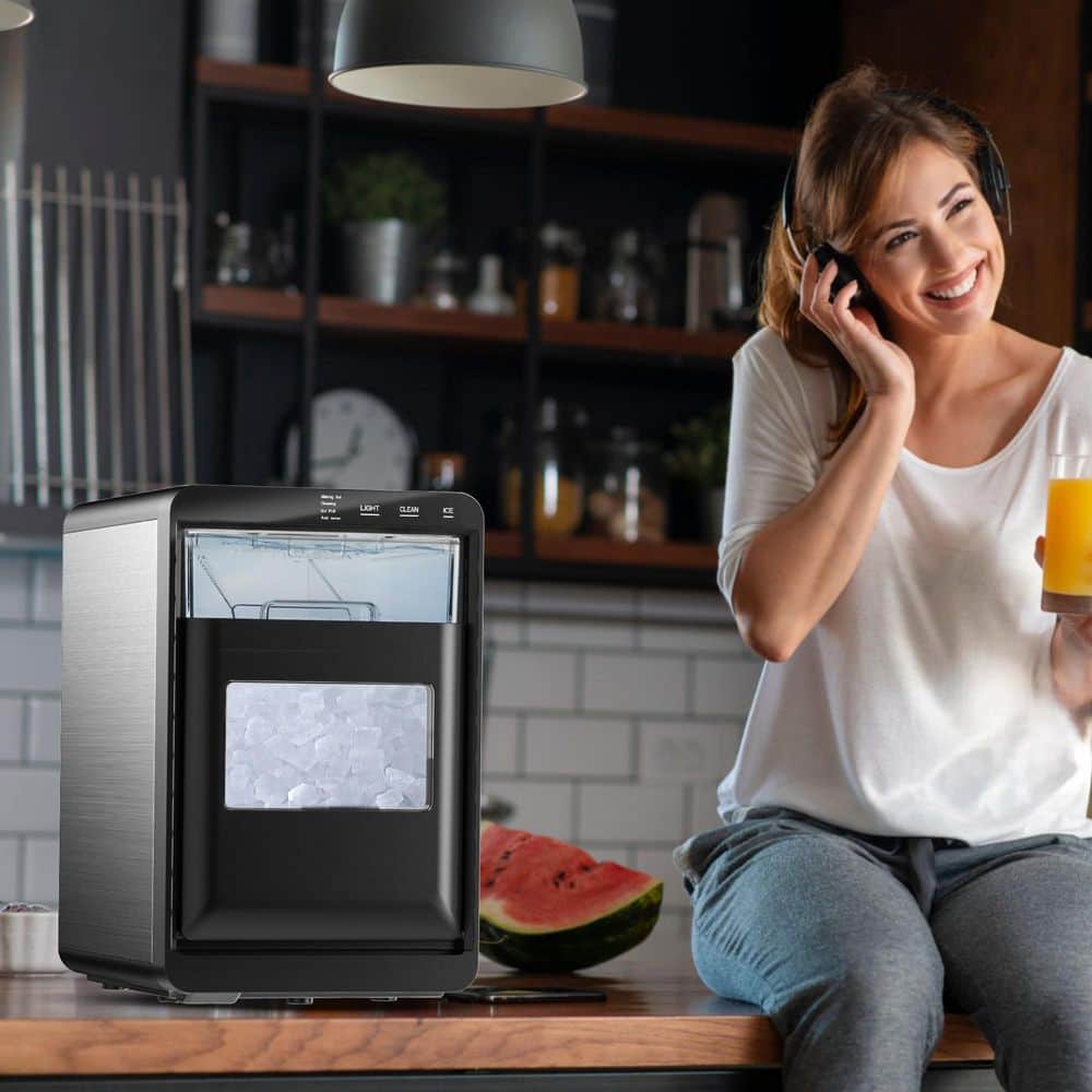 VIVOHOME 8. 7 in. 33 lbs. Countertop Nugget/Pebble Ice Maker with Self-Cleaning in Silver