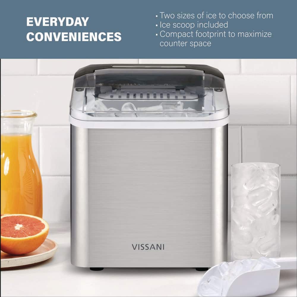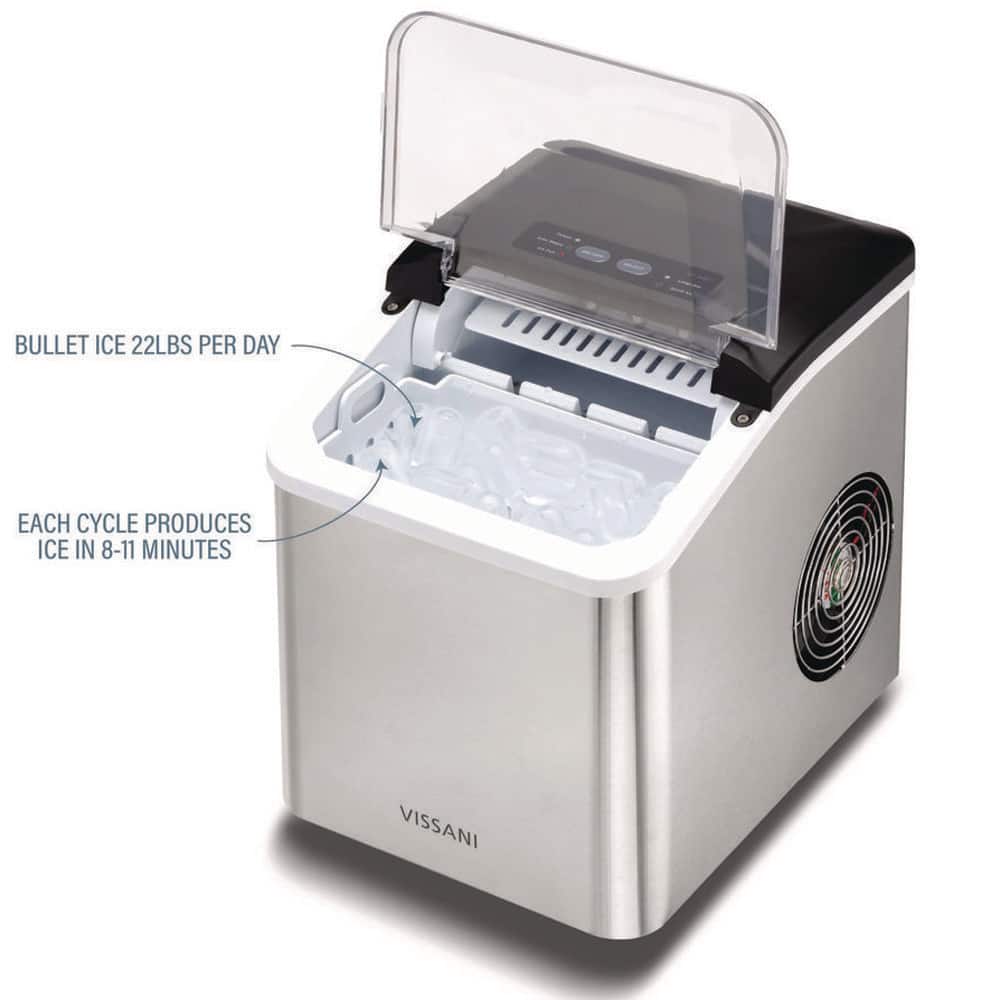 Vissani 22 lbs. Countertop Portable Bullet Ice Maker with Automatic Cleaning in Stainless Steel