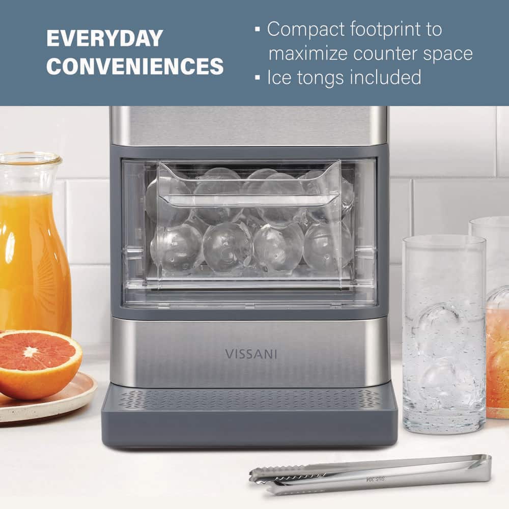 Vissani 5.12 lbs. Countertop Portable Whiskey Ball Shaped Ice Maker in Stainless Steel