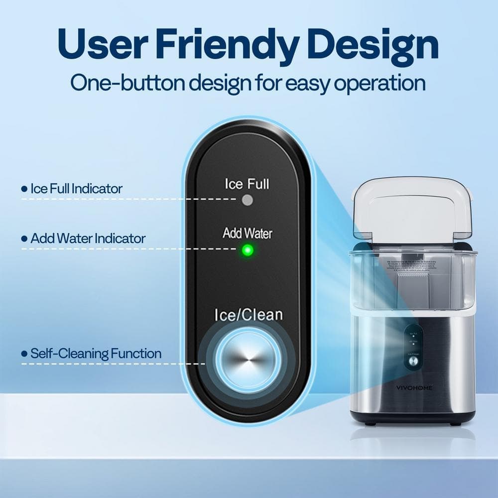 VIVOHOME 8. 7 in. 33 lbs. Countertop Nugget/Pebble Ice Maker with Self-Cleaning in Silver
