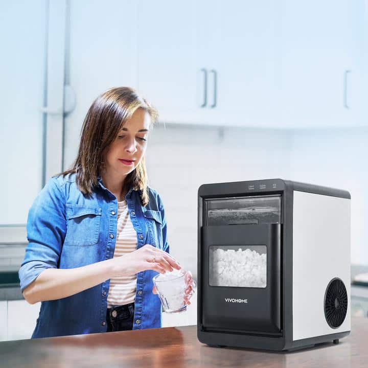 VIVOHOME countertop nugget ice maker give you the ideal crunchable pellet ice, the nugget ice produced by our pebble ice maker machine is not only soft but also has authentic flavors. Whether you enjoy it on its own or add the pebble ice to cocktails, sodas, and more, all are great choice. Our sonic pebble ice machine has compact dimensions of 13.98 x 9.84 x 14.96 in. It can fit on most countertops and tabletops easily, and is ideal for home, office, kitchen, etc.
