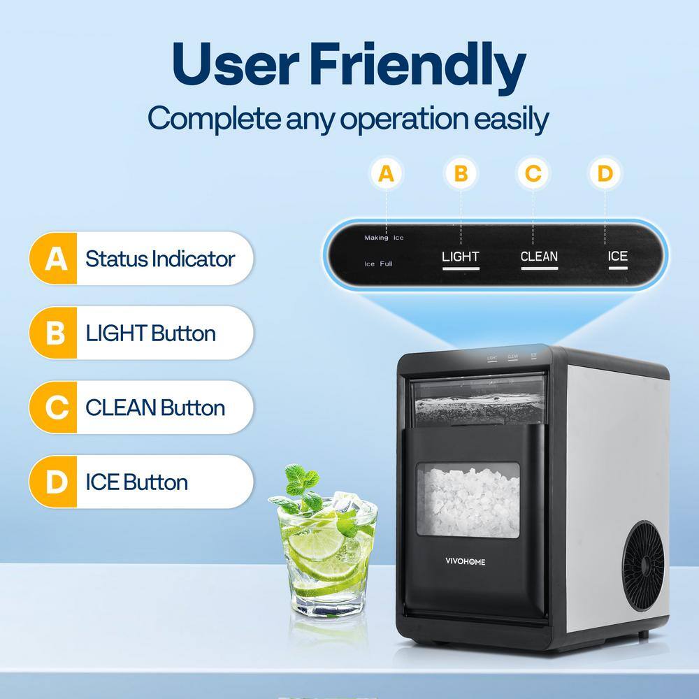VIVOHOME 9.8 in. 45 lb. Countertop Portable Nugget/Pebble Ice Maker in Stainless Steel with Self-Cleaning Function