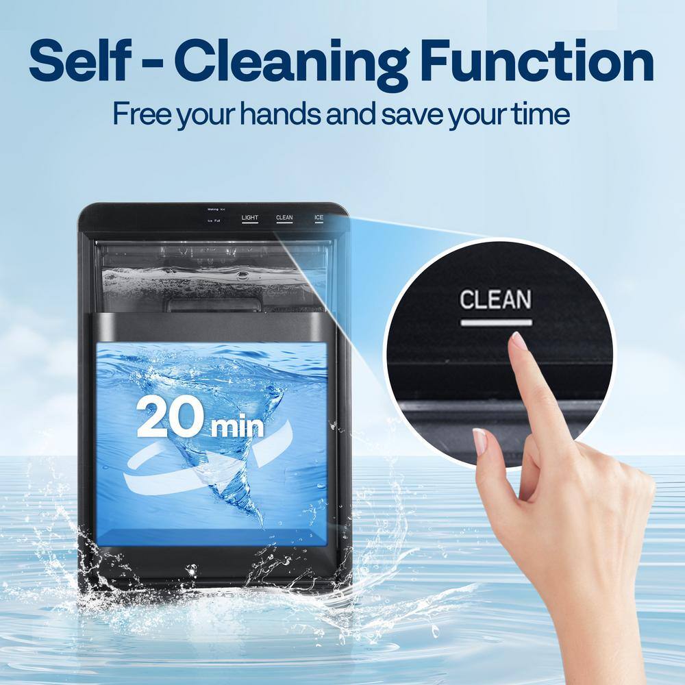 EUHOMY 9.4 in. 30 lb. Crescent Ice Portable Countertop Ice Maker in Silver with 3-Ice Sizes, Clean Cycle