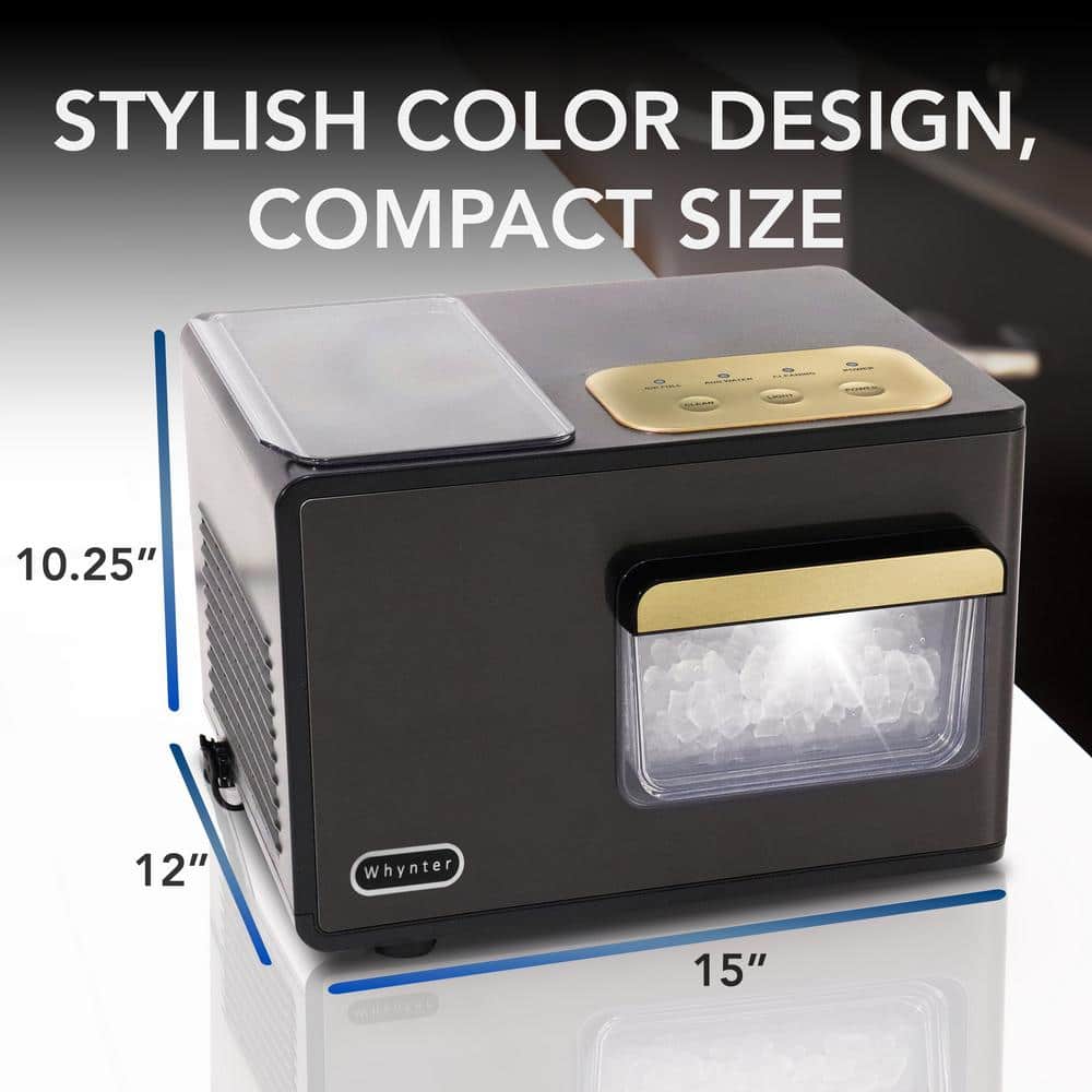 Whynter 14.5 in. 40 lbs Nugget Ice Maker Chewable SonicSno Countertop compact ice maker in Black Stainless Steel and Gold
