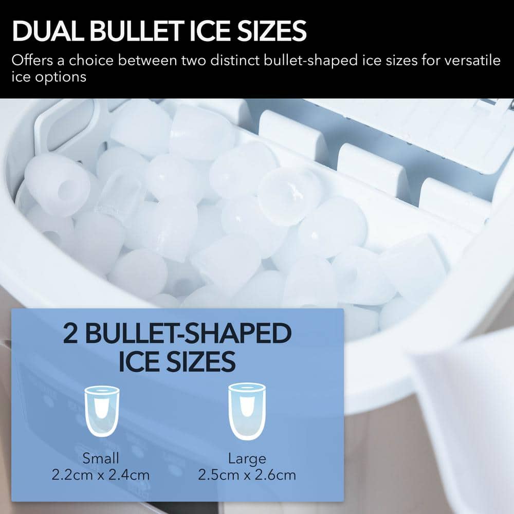 The Whynter IMC-270MS Portable Ice Maker is a highly compact and affordable unit designed for space constrained use in your kitchen, home bar or office. In addition to quickly and efficiently making perfectly bullet-shaped ice cubes, the Whynter IMC-270MS Compact Portable Ice Maker can produce up to 27 lbs. of ice per day. You can select between 2 sizes of ice bullets depending on your preferences. This portable ice maker does not need direct plumbing. Simply fill the 2.2 l reservoir with water, choose your ice size and watch the Whynter IMC-270MS Compact Portable Ice Maker make your first batch in as little as 10 - 15 minutes.