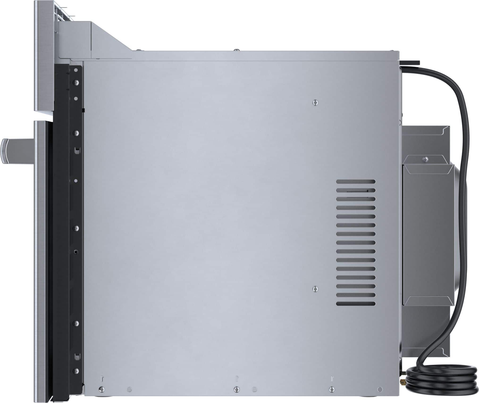Prepare large quantities of food quickly with this Bosch microwave oven. Its 1.6 cu. ft. capacity holds large dishes such as casseroles, and its nine-speed chef programs make heating favorite dishes fast and easy. The drop-down door on this 1000W Bosch microwave oven provides easy access, while convection cooking heats food evenly.