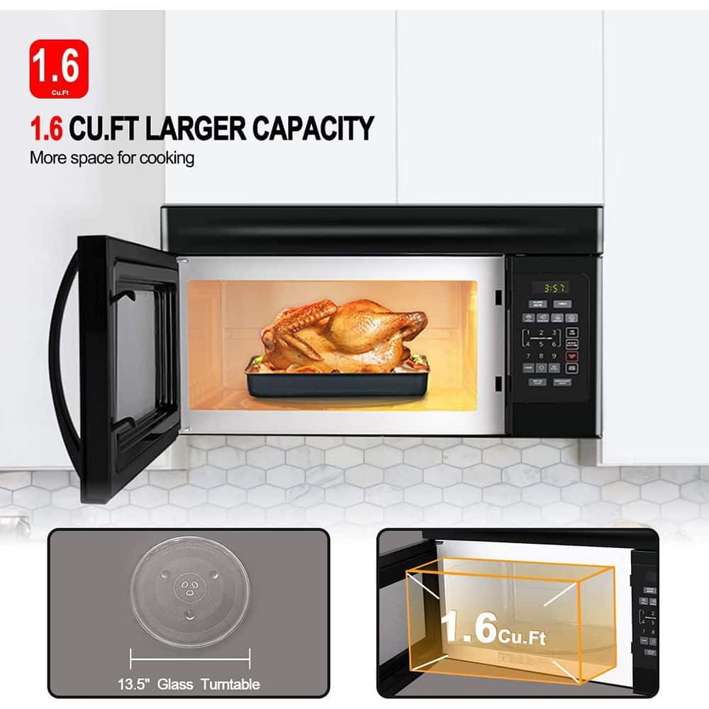 Elexnux 1.6 cu. ft. 1000W Over-the-Range Microwave in Black with 10 Variable Power Levels