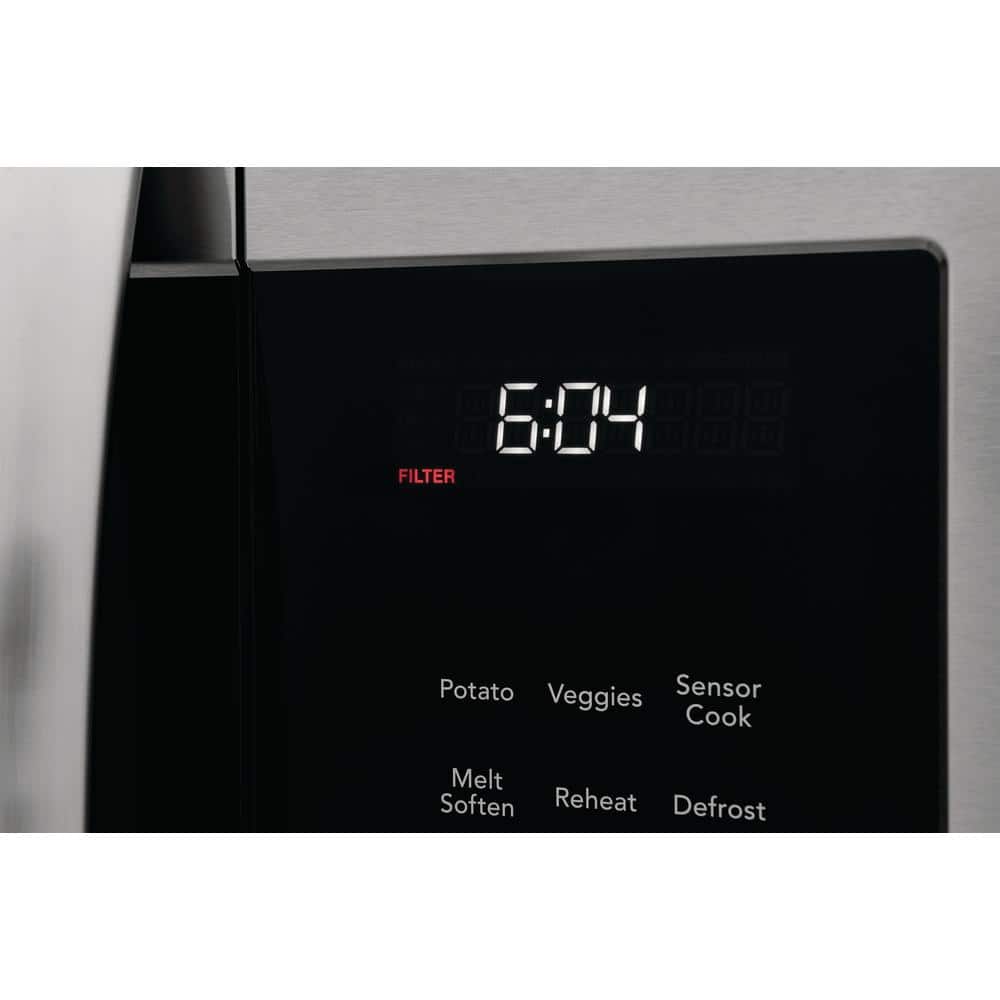 FRIGIDAIRE GALLERY 1.9 cu. ft. over the range microwave with sensor cook, delivers delicious meals by automatically determining and setting appropriate power levels and cook time. Plus, changing your filter has never been more convenient with our Push-to-Open PureAir filter door and filter indicator light. Also includes a Frigidaire PureAir filter, and features our fingerprint resistant, smudge-proof stainless steel finish.