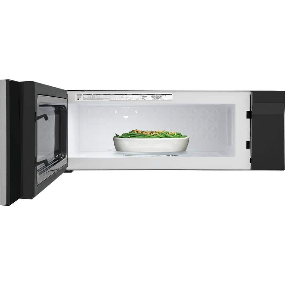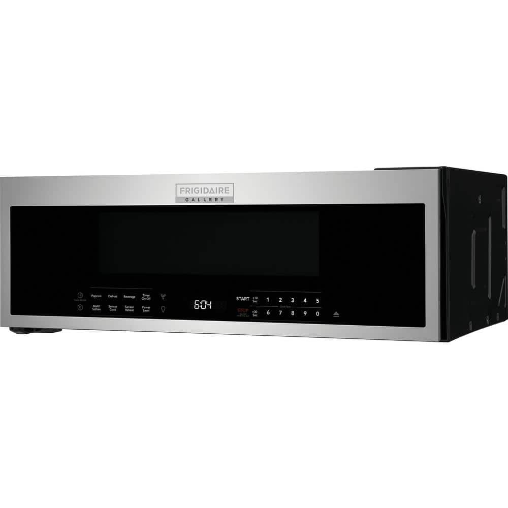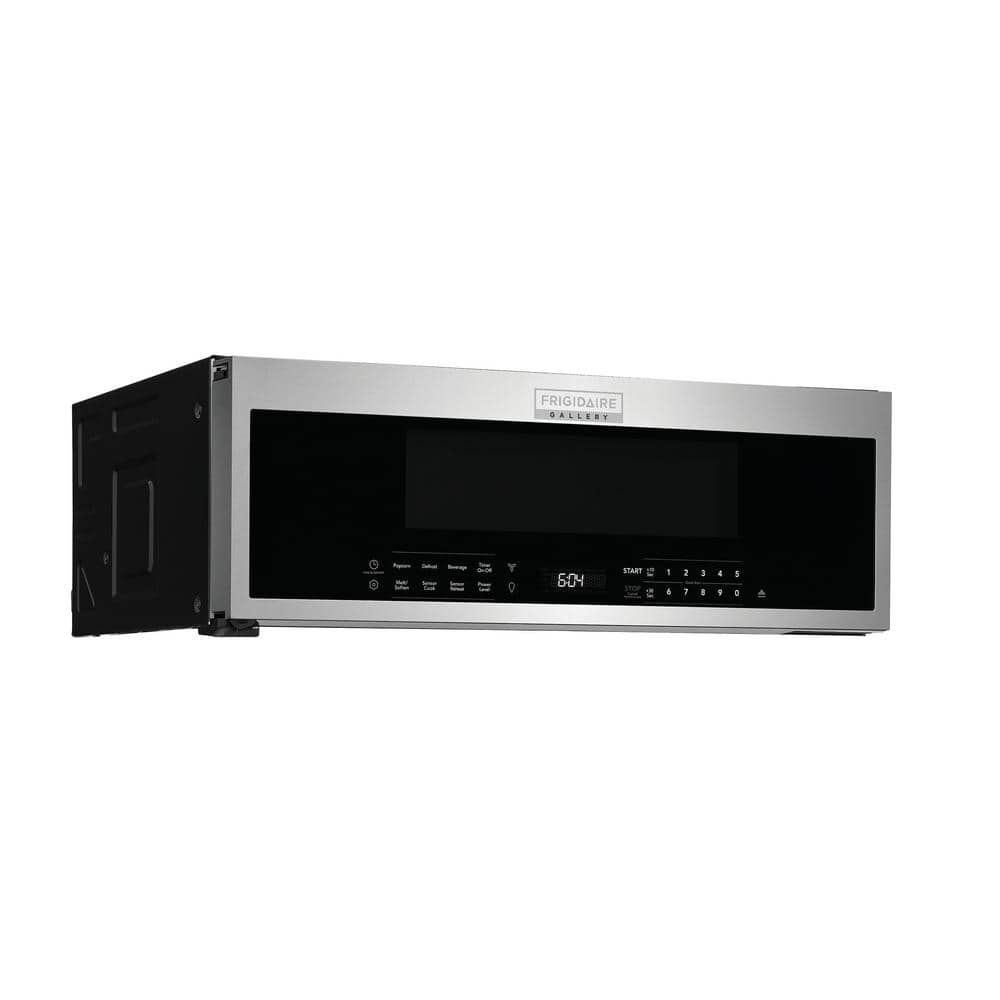 Maximize countertop space with this FRIGIDAIRE GALLERY 1.2 cu. ft. Low-Profile Over-the-Range Microwave. It replaces your undercabinet hood without sacrificing interior capacity. Sensor Cook, preset cooking options, and Sensor Reheat offer time savings so that you can put delicious meals on the table in no time. Make meal preparation and cooking simple with LED lighting that offers a clear, bright view of your cooktop.