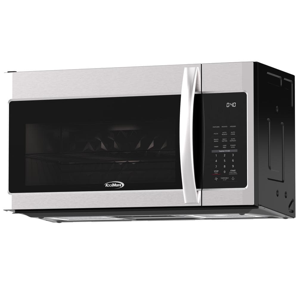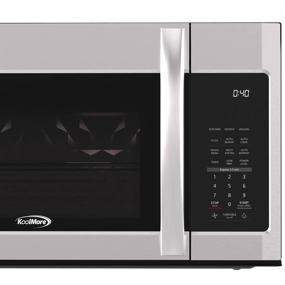 Heat Food Quickly and Efficiently with the KoolMore Over Range Microwave Oven.While everyone needs a stove and oven, one of the most useful appliances in any kitchen is the microwave. But when you need to save valuable counter space without giving up the microwave, nothing beats the quality of a KoolMore over-the-Range Microwave Oven.Designed to fit seamlessly over your stove, this high-powered, easily programmable unit lets you cook, reheat, and defrost food more effortlessly. It also maintains a clean cooking environment ideal for meat, veggies, and all those snacks you love so much.Child Lockout Feature: The built-in microwave is also designed with an innovative child safety lockout that helps prevent kids from opening and turning on the microwave when you're not around.Accurate Kitchen Timer: Whether you're cooking in the microwave or timing things below on the stove or in the oven, this microwave lets you keep track of the clock with an accurate, built-in kitchen timer.The KoolMore over-the-range microwave oven boasts 1000 watts of premium power to help you cook everything from popcorn to Hot Pockets to delicious bowls of soup.Fingerprint Resistant. This versatile unit is made with premium stainless steel, which is stronger and more resistant to fingerprints and smudges. The silver finish also matches other appliances!
