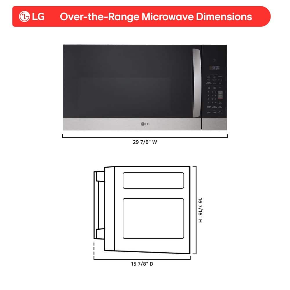 With a WideView Window, bright LED display, and a convenient handlebar for easy access, this large capacity, 1.7 cu. ft. LG Over-the-Range Microwave delivers a classic design with a sleek, modern aesthetic, and a spacious interior for your meals. Plus, with convenient automatic cooking settings and 10 adjustable microwave power levels, you have the flexibility to let the microwave do the work or take control into your own hands. Thanks to the PrintProof stainless steel, and EasyClean interior, not only does this microwave get the job done, but it will continue to look great doing it.