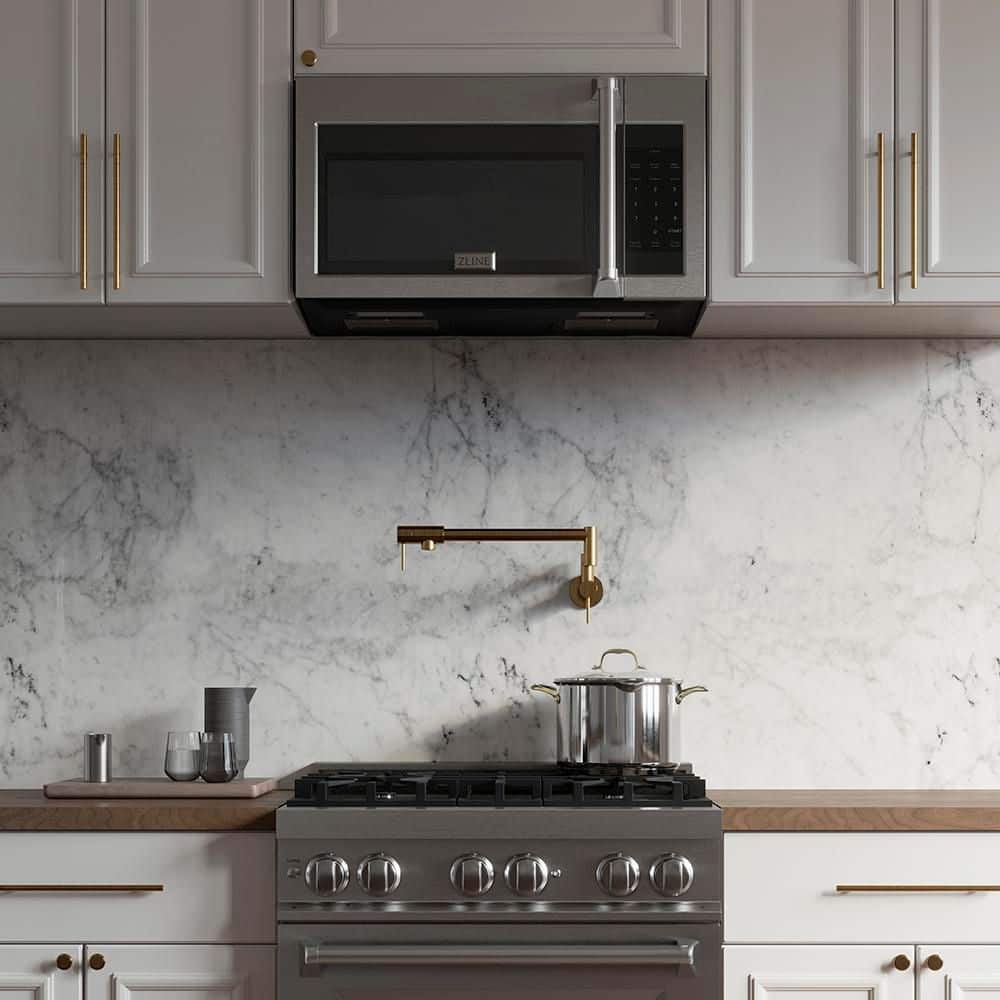 ZLINE Kitchen and Bath 30 in. 300 CFM 900-Watt Over the Range Microwave Oven in Stainless Steel & Traditional Handle