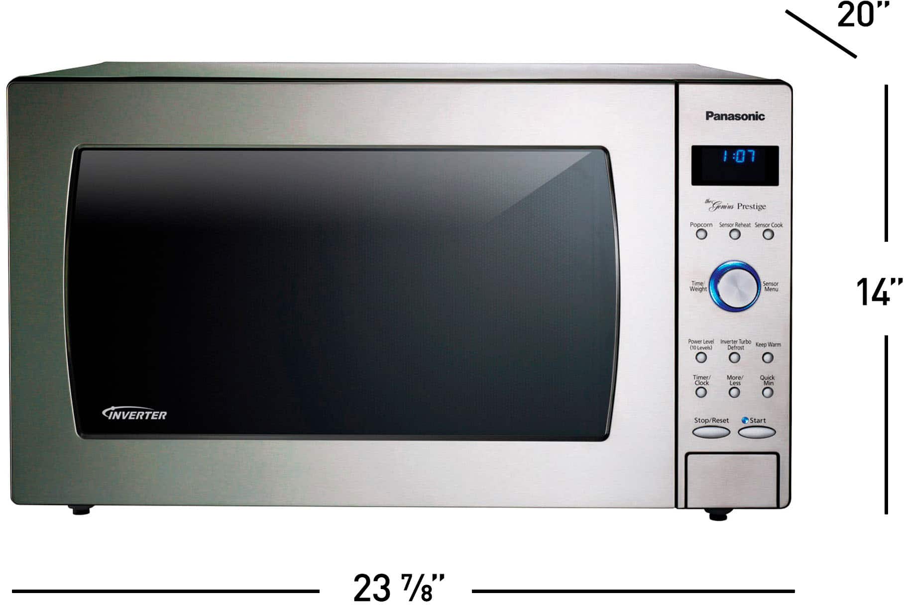 Panasonic NN-SD987SA Full-Size Microwave: Cook in style with this sleek microwave. Small or large meals cook quicker and more efficiently with Inverter technology. The high-power settings preserve the nutritional value of your food; it also reduces cold spots and unappetizing textures.