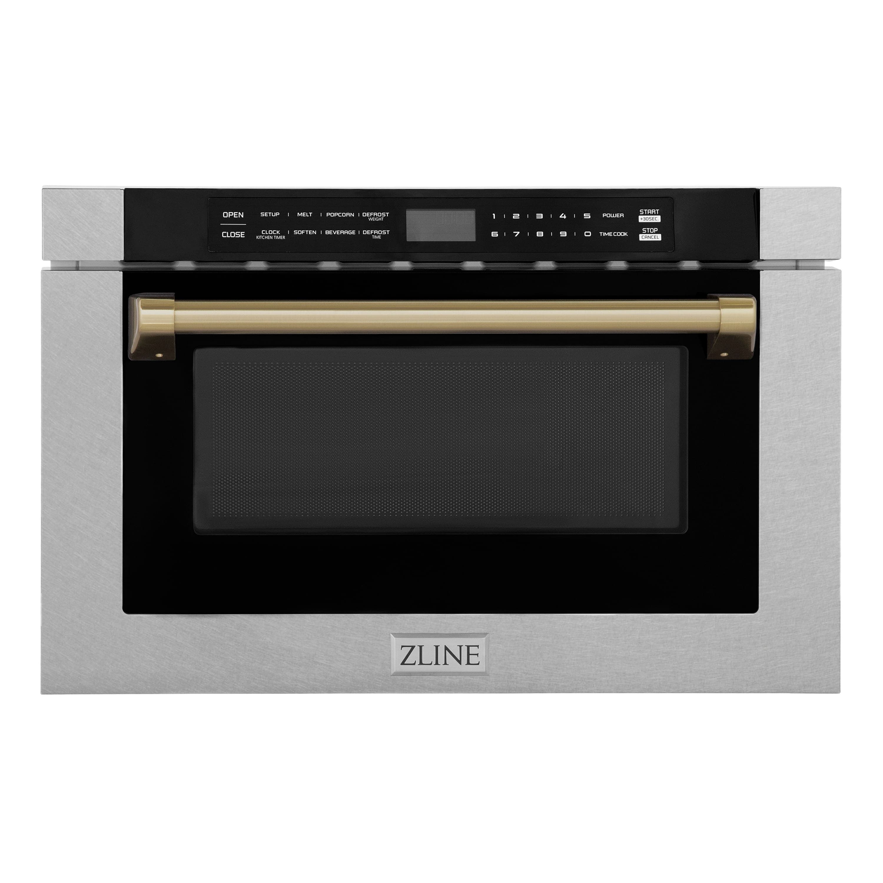 ZLINE - Autograph 24 in. Microwave Drawer with Traditional Handle in Satin Steel and Bronze Accents - Stainless Steel and Champagne Bronze Accents