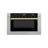 ZLINE - Autograph 24 in. Microwave Drawer with Traditional Handle in Satin Steel and Gold Accents - Stainless Steel and Gold Accents