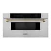 ZLINE - Autograph 30 in. 1.2 cu. ft. Built-in Microwave Drawer and Polished Gold Helix Handle - Stainless Steel