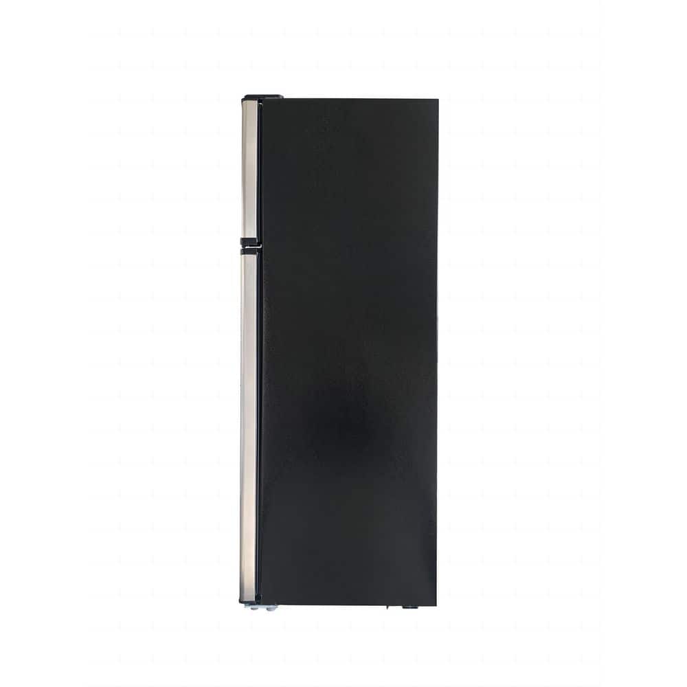 Your 7.5 cu. ft. Top-Freezer Refrigerator with Stainless look, and recessed black handles, features upfront temperature controls that make it simple to regulate both the fresh food and freezer sections. Adjustable shelves provide flexibility to meet your food storage needs. Combines easy-to-use features with practical design to complement any kitchen.