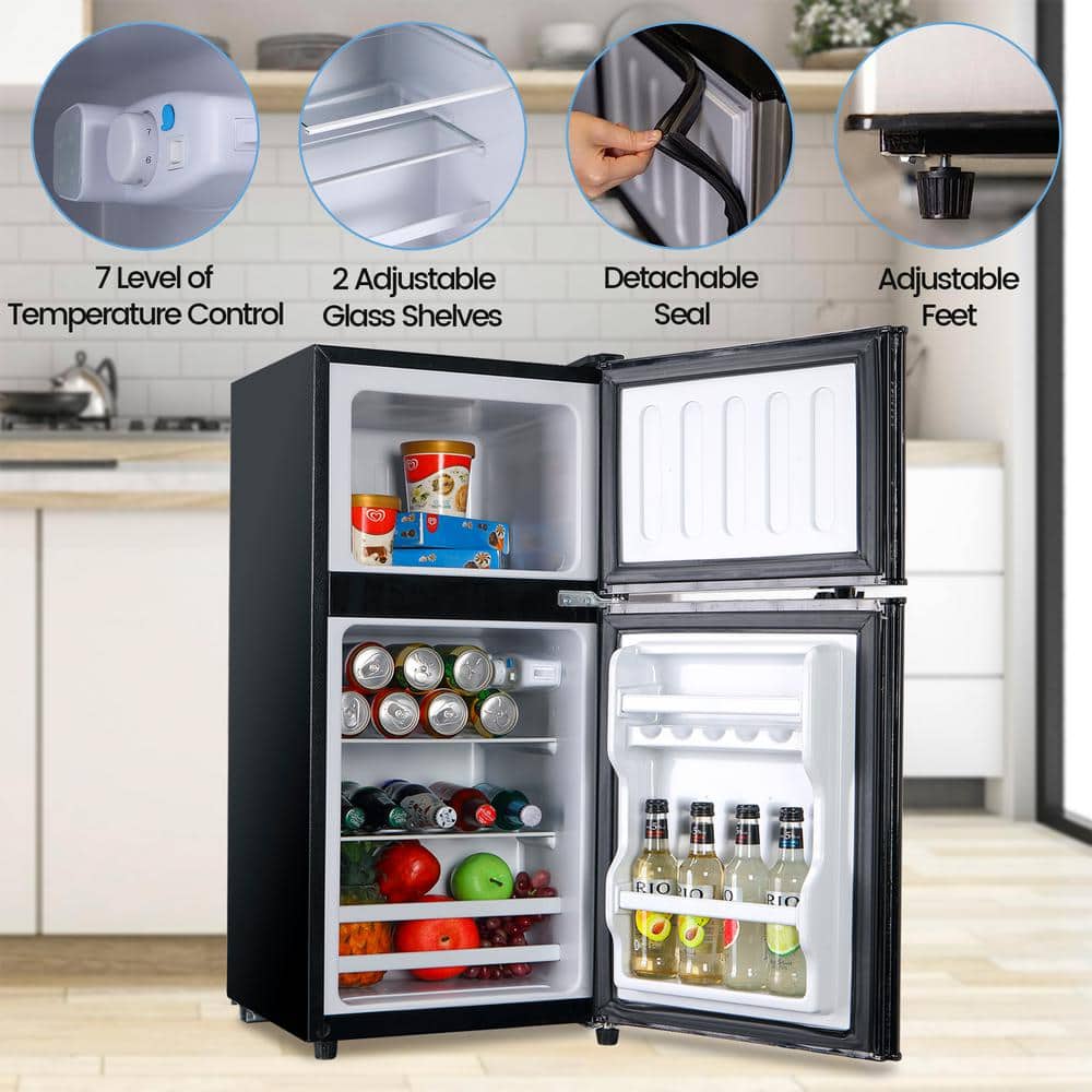 Elevate your compact living space with the 2026 updated 3.5 cu. ft. Mini Refrigerator. This black, 2-door unit combines a modern exterior with high-performance features, including a top freezer and 7 temperature levels. Its customizable interior with removable shelves, energy-saving technology, and quiet operation make it an ideal, stylish choice for keeping your food and drinks perfectly chilled wherever you need it.
