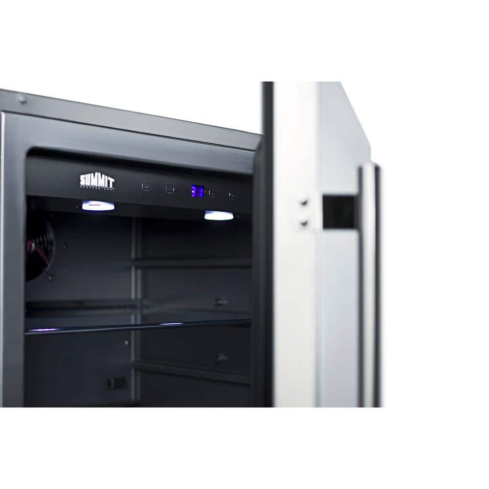 Summit's SPR627OS Series features built-in all-refrigerators equipped with user-friendly features for convenient use in any outdoor kitchen. The SPR627OS is a 24 in. wide all-refrigerator that can be used built-in or freestanding in any outdoor or indoor location. It features a jet black cabinet and reversible stainless steel door with a professional style handle. A factory installed lock offers added security. Inside, this frost-free refrigerator includes an internal fan for an evenly cooled interior and a recessed LED light for an elegant yet energy efficient glow. The digital thermostat (located in the interior) allows you to adjust the temperature at the touch of a button. Adjustable glass shelves make it easy to organize the 4.6 cu. ft. interior. The floor is specially slotted to hold bottles in place. With a stunning design and convenient features, Summit SPR627OS is the ideal finish for any outdoor or indoor kitchen.