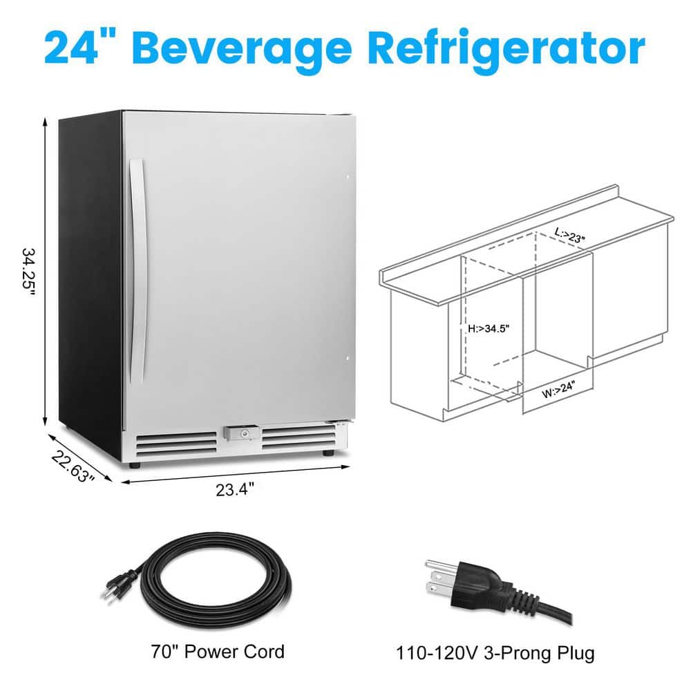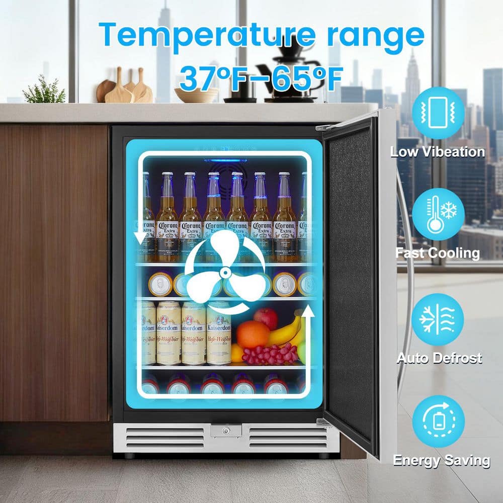 Tylza 23.4 in. 230-Cans 4.9 cu. ft. Built-in Beverage Refrigerator Reversible Hinge Removable Tempered Glass Shelves in Silver