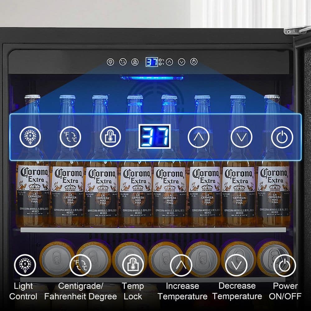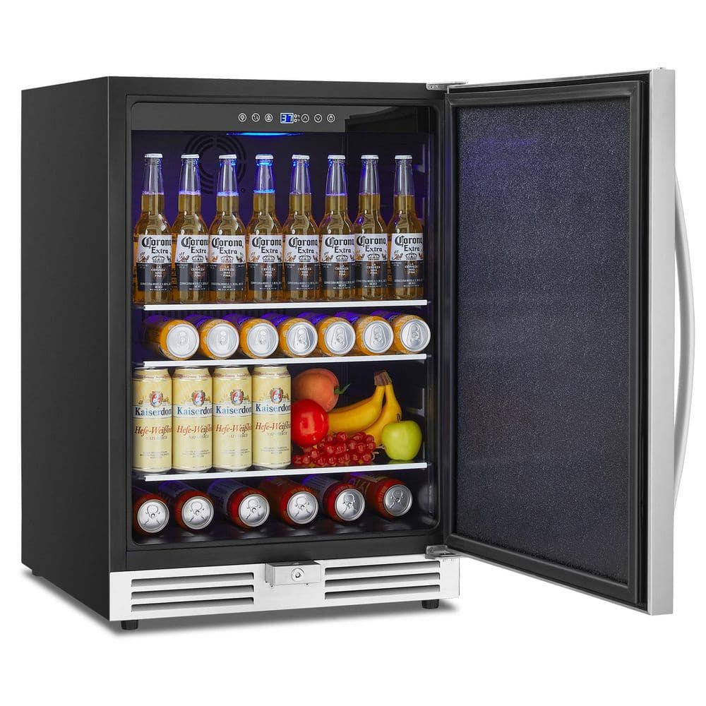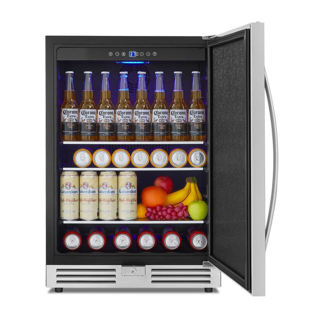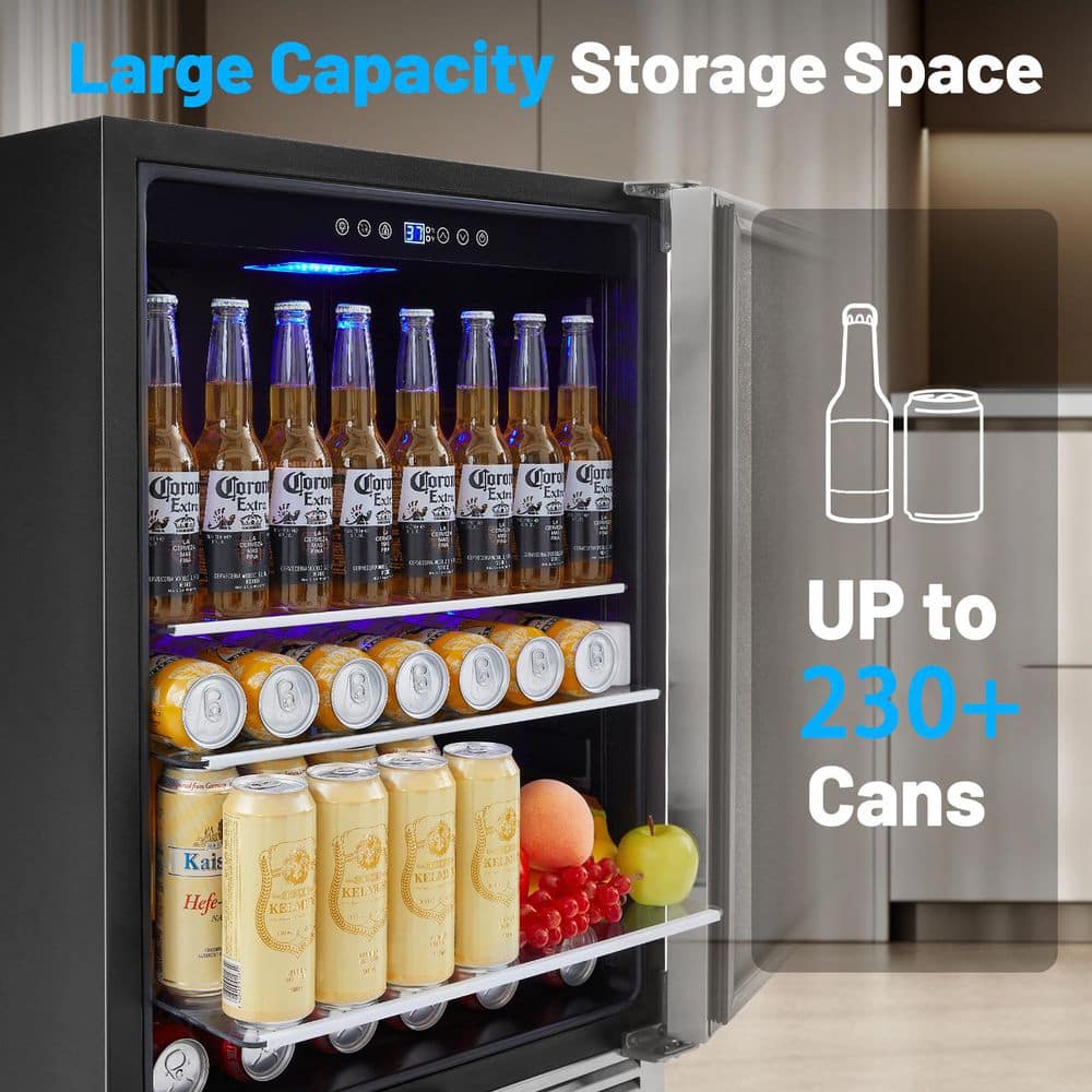 Tylza 23.5 in. Single Zone 235-Can Built-in Beverage Cooler in Black Mini Refrigerator 4.9 cu. ft. Auto Blue Lighting