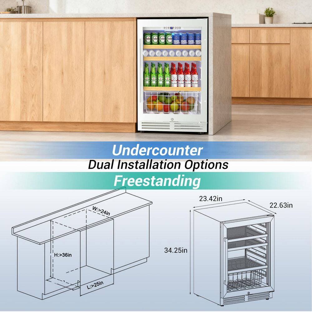 Tylza 23.5 in. Single Zone 230-Can Beverage Cooler in White Built-In Mini Refrigerator 4.9 cu. ft. with Reversible Door Hinge