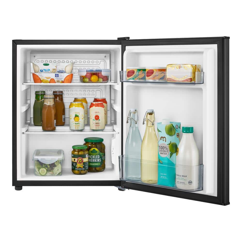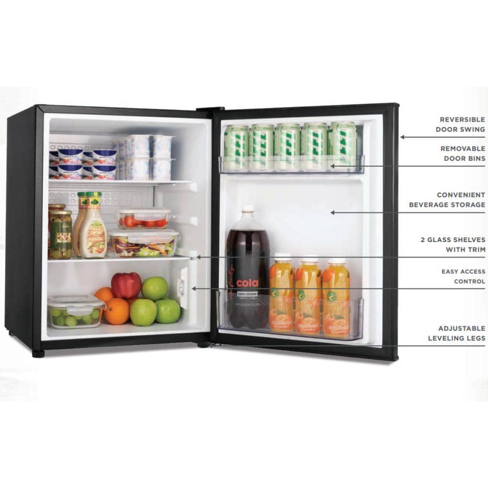 The Vissani 2.6 cu. ft. Mini Refrigerator has the storage options you're looking for. It is a freezer-less design which allows for more usable fresh food and drink storage capacity. The sleek appearance is matched by its well-designed interior, which includes a can holder to conveniently keep canned beverages in the door, while additional door shelves provide space for other frequently used items. Its 2-glass shelves are easy to clean, and the ENERGY STAR qualified design helps save on energy costs without sacrificing performance. Perfect compact size for use in dorm rooms, offices, basements, rec/playrooms, break rooms.