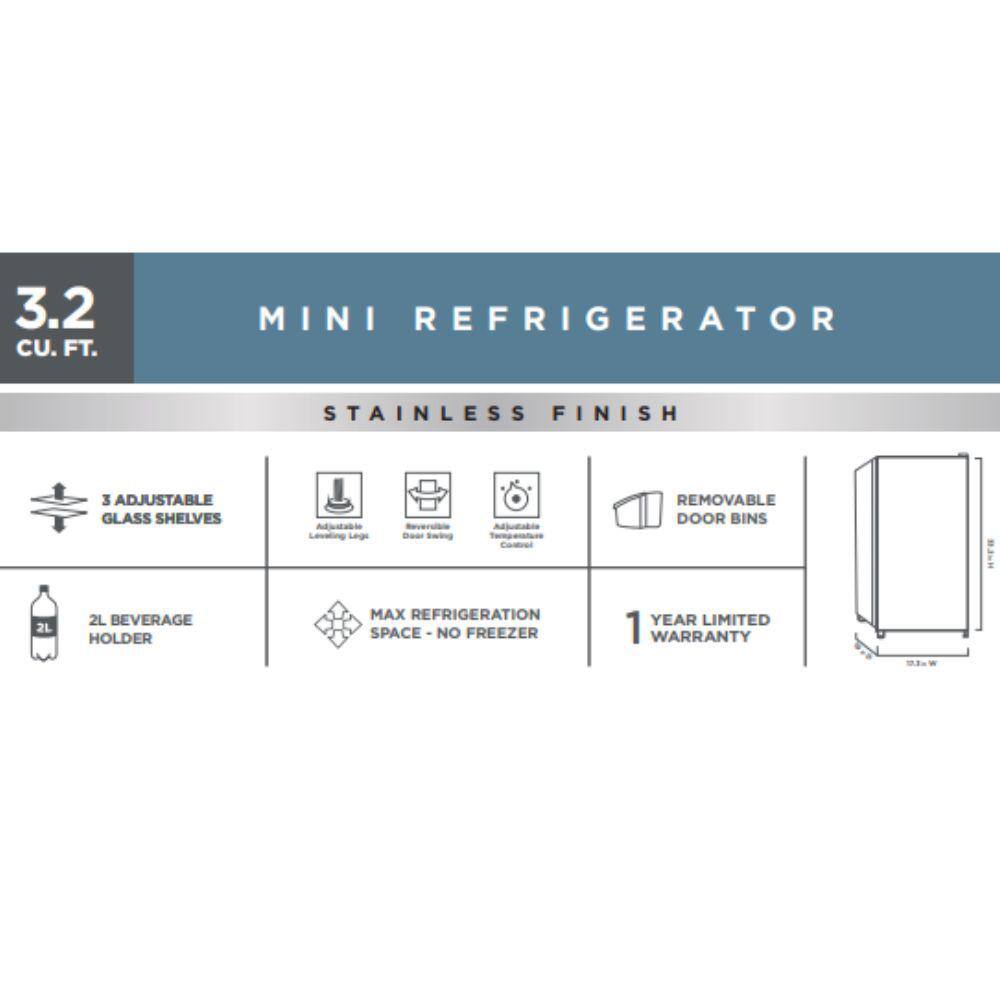 Vissani 3.2 cu. ft. Mini Refrigerator in Stainless Steel, ENERGY STAR