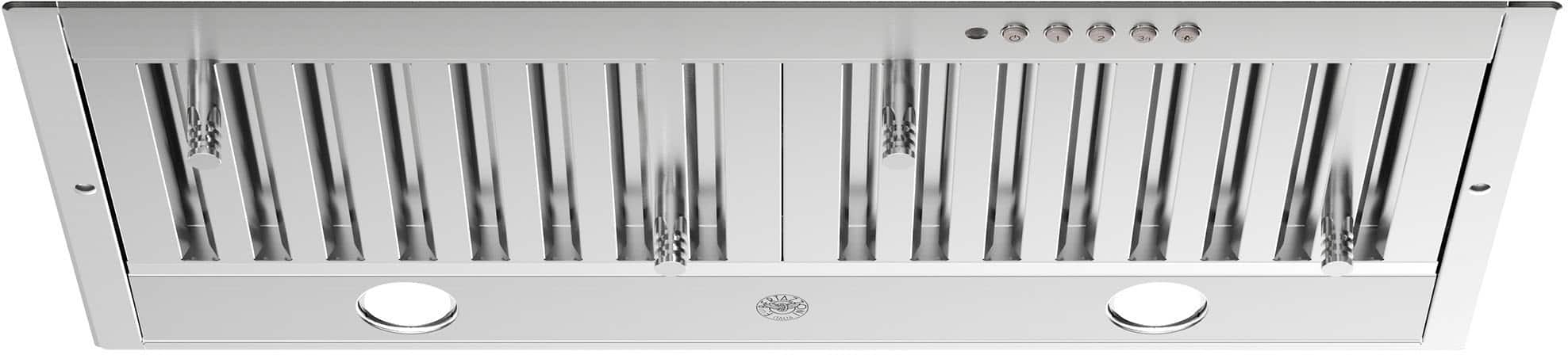 All Bertazzoni hoods are designed, engineered and made in Italy using the highest grade materials and components. Every hood pairs perfectly with all Bertazzoni ranges, rangetops and cooktops of the same size and integrates seamlessly with all other Bertazzoni appliances into style-harmonized suites for a true, high-performing kitchen. Powered by one 600 CFM motors, each with three power settings plus booster, this high-performance ventilation liner comes with baffle stainless steel filters, easily removable and dishwasher safe. 4 LED lights provide bright illumination of the cooking surface under the hood. All Bertazzoni appliances are covered by a 2-year warranty.