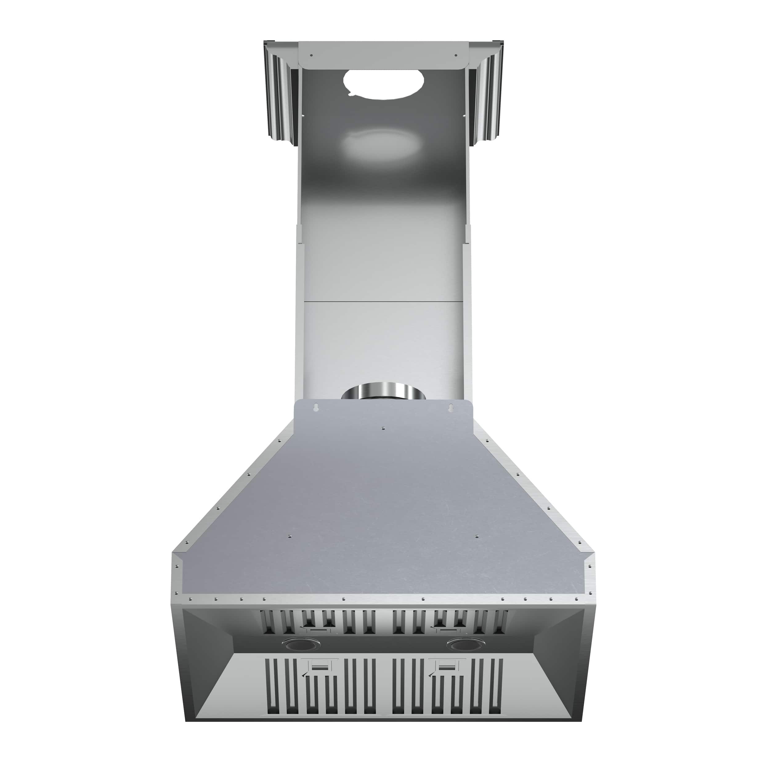The Orvieto 30" Wall Mount range hood helps create superior air quality with its powerful 600 CFM motor and four-speed push-button control. The decorative stainless-steel crown molding adds an attractive finish to your kitchen design. The hood is made from high-grade stainless steel for durability, and boasts noise reduction technology for a quieter sound while in use. The included surface lights provide superior illumination and energy efficiency. Baffle filters capture heat, odors, gases and are dishwasher-safe making cleanup a breeze. This range hood is sure to be an asset in any kitchen.