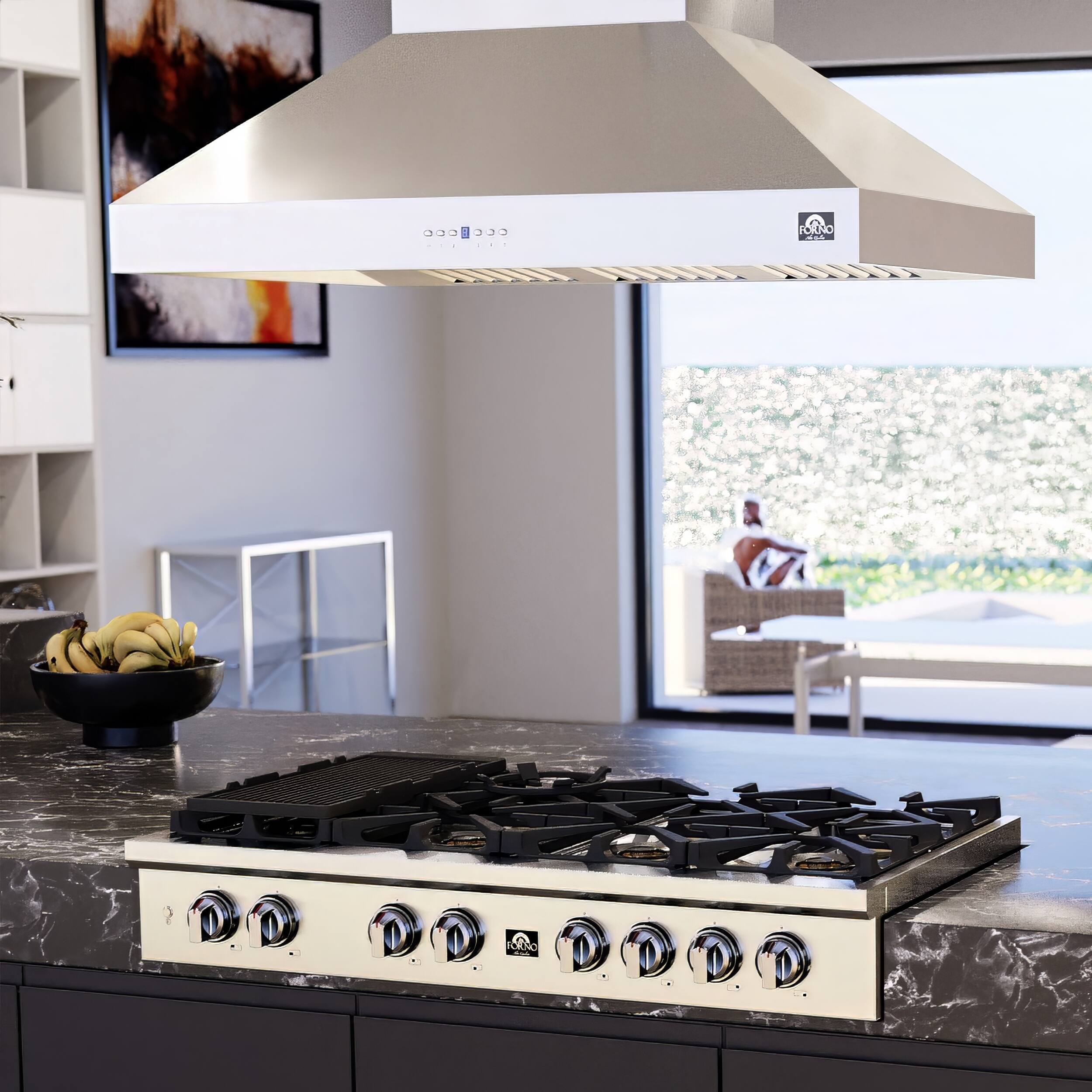 Forno Appliances - 48 inches - Externally Vented - Island Range Hood - Stainless Steel