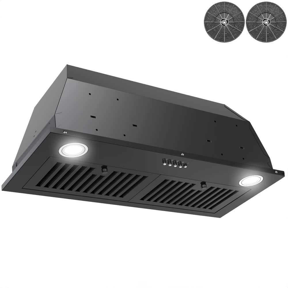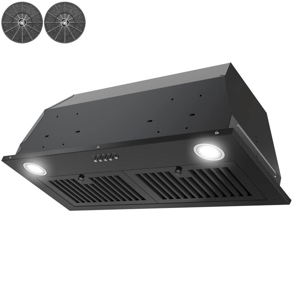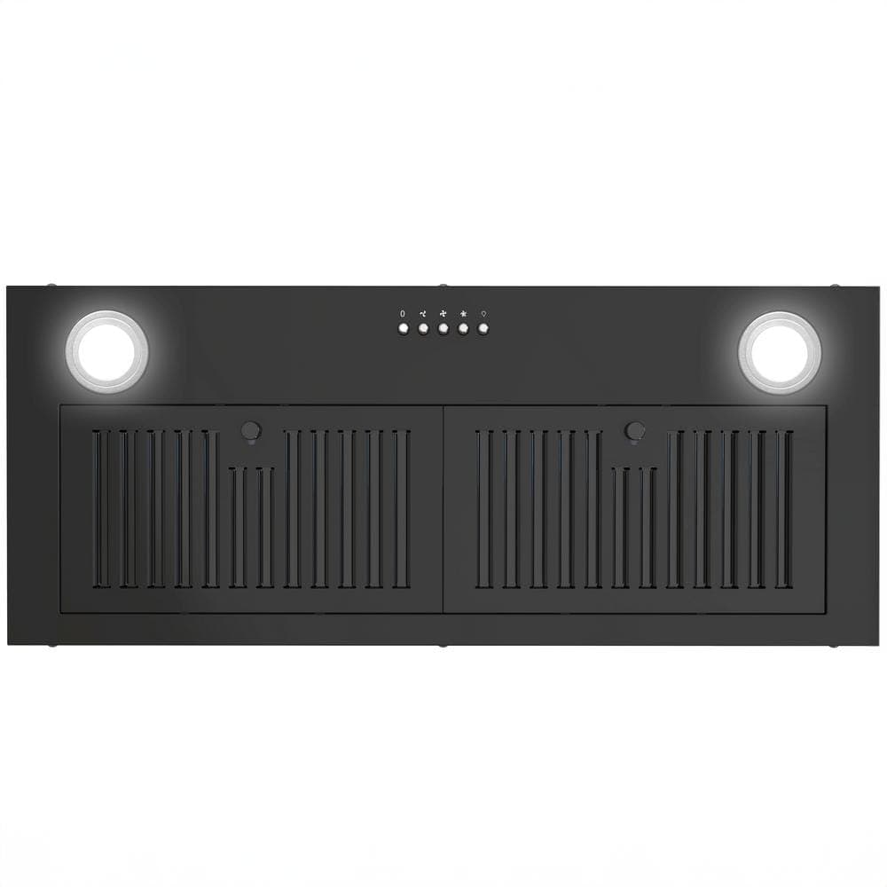 AKDY 30 in. 319 CFM Convertible Insert Range Hood with Carbon Filters, LED Light and Push Button Controls in Black