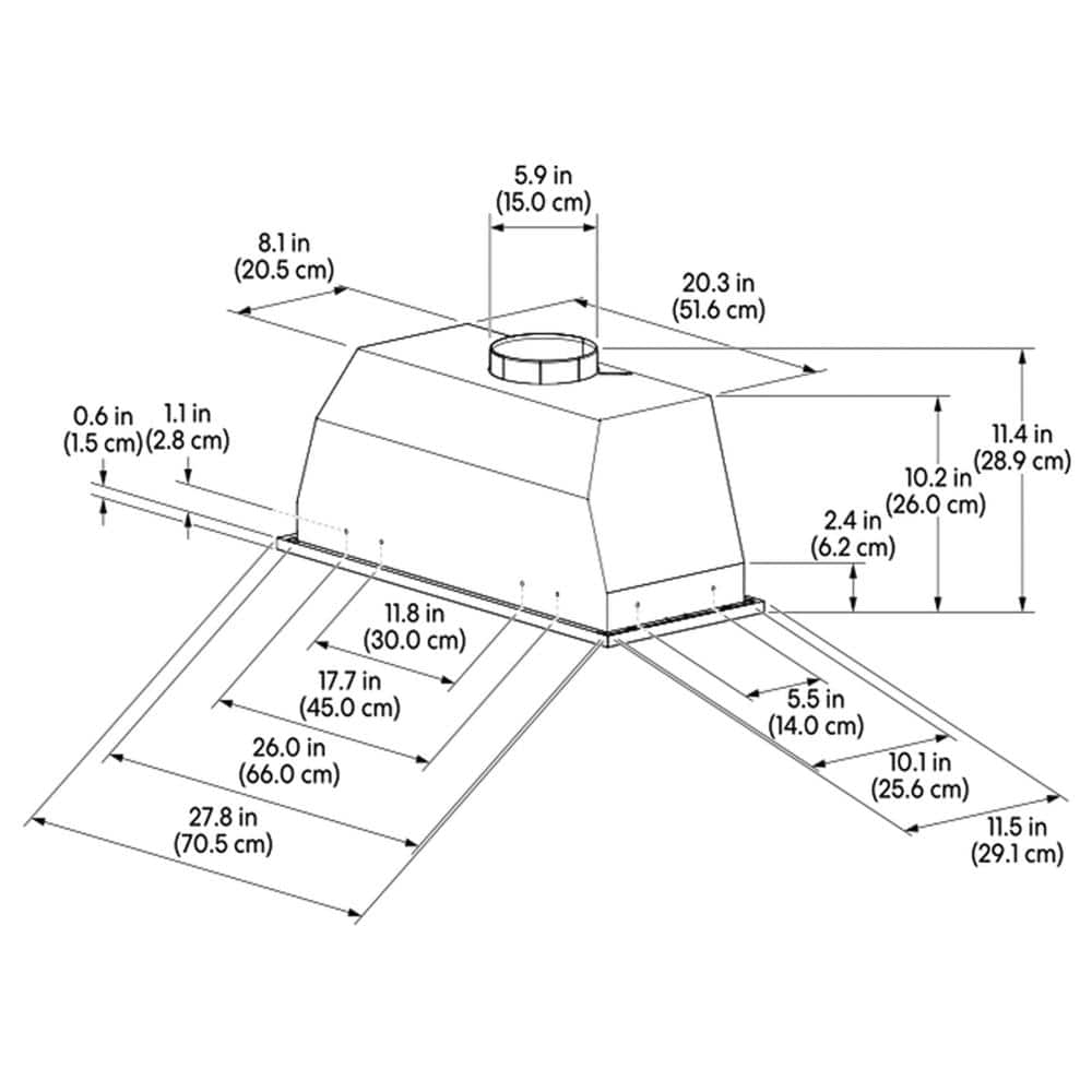 Upgrade your kitchen with the 30-Inch Insert/Built-In Range Hood, designed to blend functionality with modern style. Finished in sleek black-painted stainless steel, this range hood provides a sophisticated look that complements any kitchen decor.Featuring a robust 319 CFM motor, this range hood efficiently clears your cooking space of smoke, odors, and grease. The intuitive push control panel allows you to choose from three fan speeds to suit your cooking needs. For added convenience, the range hood is equipped with two 1.5W LED lights that offer bright and focused illumination, ensuring a well-lit cooking area.The range hood includes two dishwasher-friendly baffle filters that effectively capture grease and oil, making maintenance straightforward and hassle-free. Versatility is key with this model, as it can be converted from ducted to ductless installation using the included carbon filter (CF0011), allowing for flexible ventilation options.Operating at a maximum noise level of 72 dB, the range hood maintains a quieter kitchen environment while delivering powerful performance. Backed by a 3-year limited parts warranty, this range hood ensures reliability and peace of mind for years to come. Enhance your kitchen with this stylish and efficient range hood, designed to make cooking and cleaning easier.