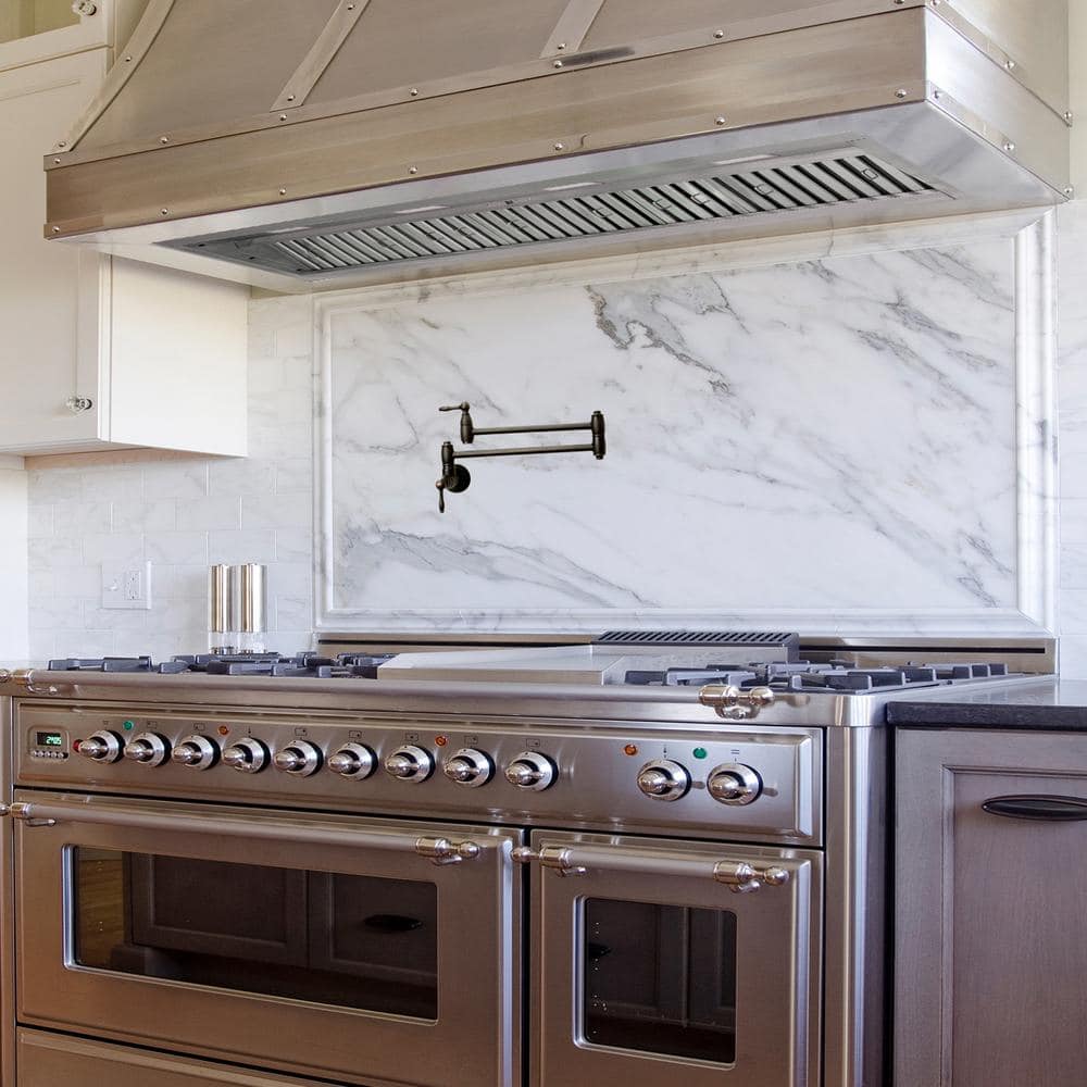 This 54 in. insert range hood not only provides excellent performance, but looks great as well. It features a powerful 1200-CFM motor and has 4 fan-speed settings and 8 in. round duct to work perfectly with your needs. The dishwasher-safe grease filter is a breeze to clean up.