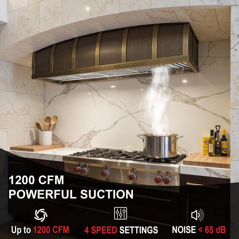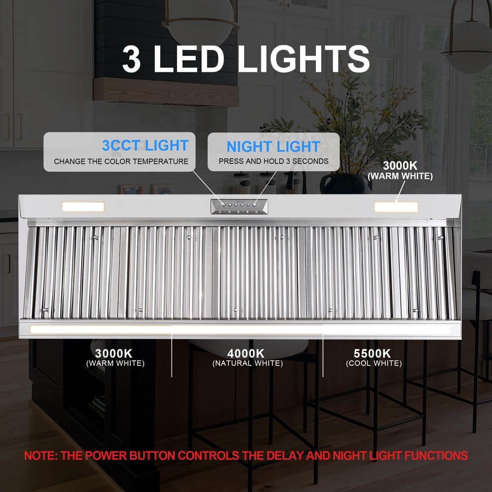 Upgrade your kitchen with the Akicon 60 in. Wall Mount Range Hood, featuring a powerful 1200 CFM copper motor that effectively eliminates smoke, grease and odors. The built-in Heat-Sensitive Auto Speed function automatically adjusts fan speed based on temperature for effortless ventilation, while the ultra-quiet operation keeps noise levels under 65 dB-even at maximum power. This hood includes a sleek touch control panel with 4 fan speeds, Power-Off Delay and memory function. 3CCT dimmable LED lights provide bright, adjustable lighting over your cooktop. Heavy-duty stainless steel baffle filters with an integrated oil collector trap up to 95% of grease and are dishwasher-safe for easy cleaning. Crafted from fingerprint-resistant stainless steel and designed for 8 in. round ducted installation, this range hood is ETL certified and backed by a 3-year warranty for lasting performance and peace of mind.
